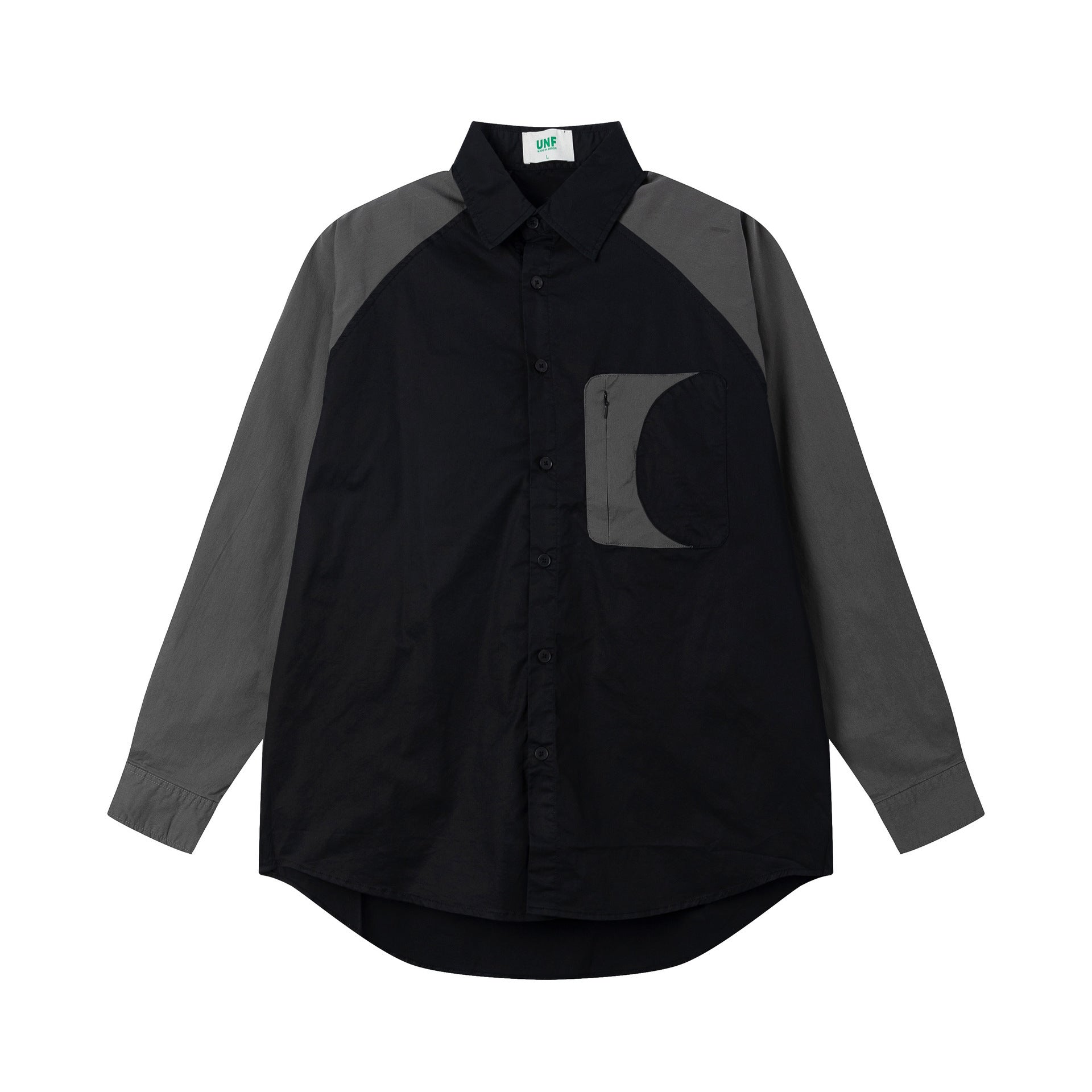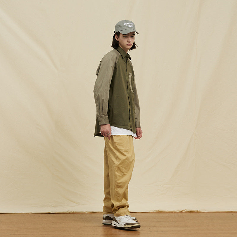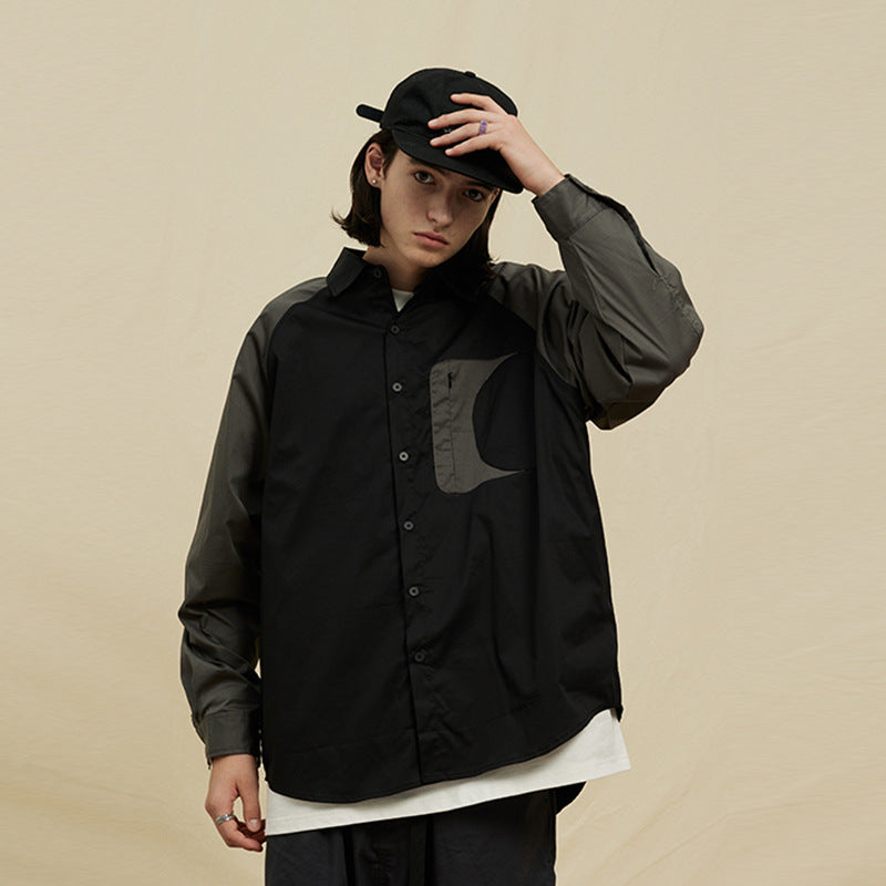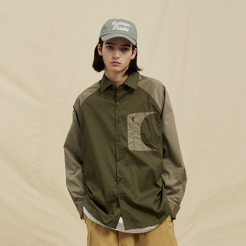 All-matching Shirt Color-block Raglan Sleeves Lapel Loose Casual Shirt