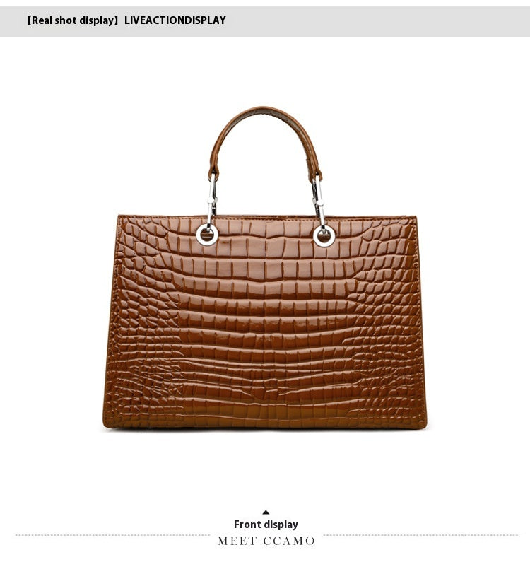 This tote is crafted from first-layer cowhide leather, finished with a controlled croc-embossed pattern that adds surface definition without compromising leather strength. The embossing is pressed deep enough to retain texture over time, not stamped lightly for visual effect.