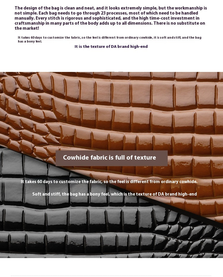 Croc-embossed leather often fails when the base leather is weak. Here, the embossing is applied only after selecting first-layer cowhide with tight fiber structure. This prevents pattern flattening and edge curl over time.