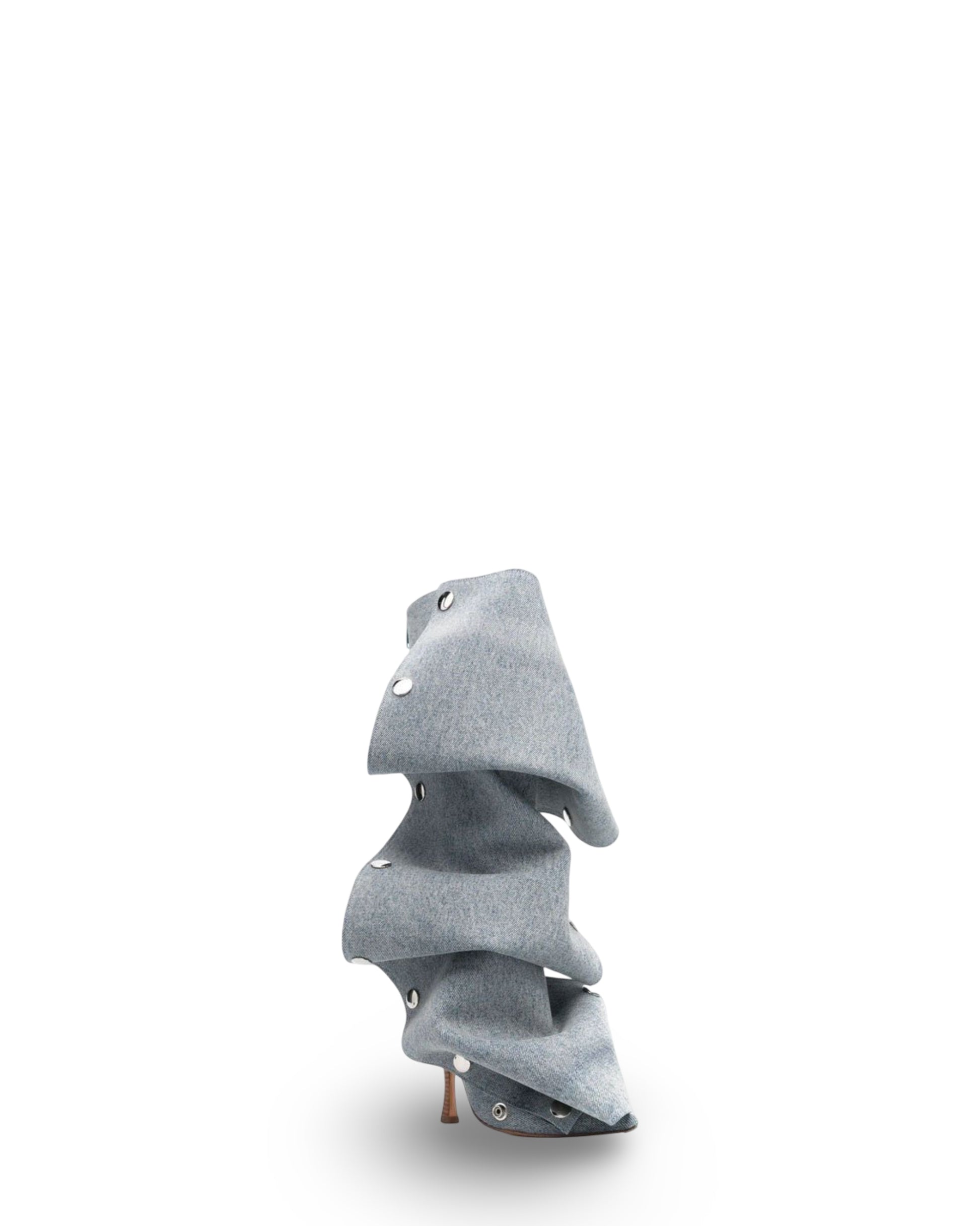 Denim Stitching Casual Two-way Pile Style Knee-length Boots