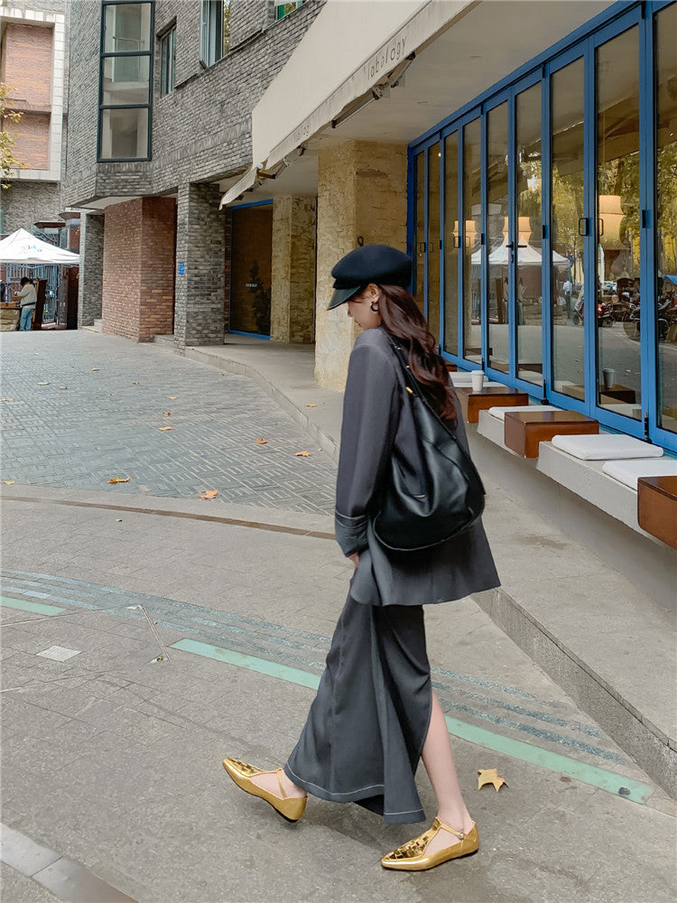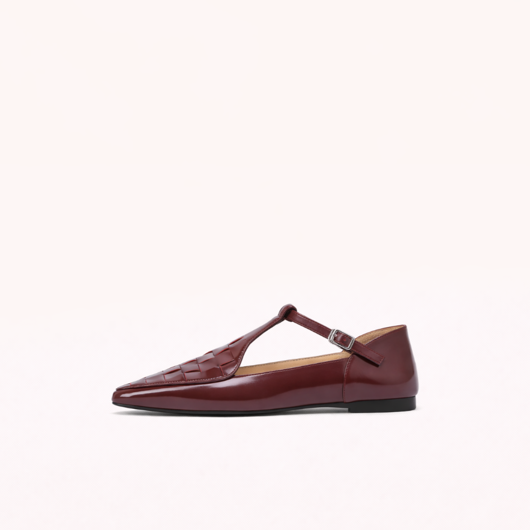Crafted for women who value control, composure, and permanence, this T-strap loafer blends classic European form with modern restraint. The pointed toe elongates the profile, while the flat sole keeps the posture grounded — made for long hours, sharp movement, and calm authority.