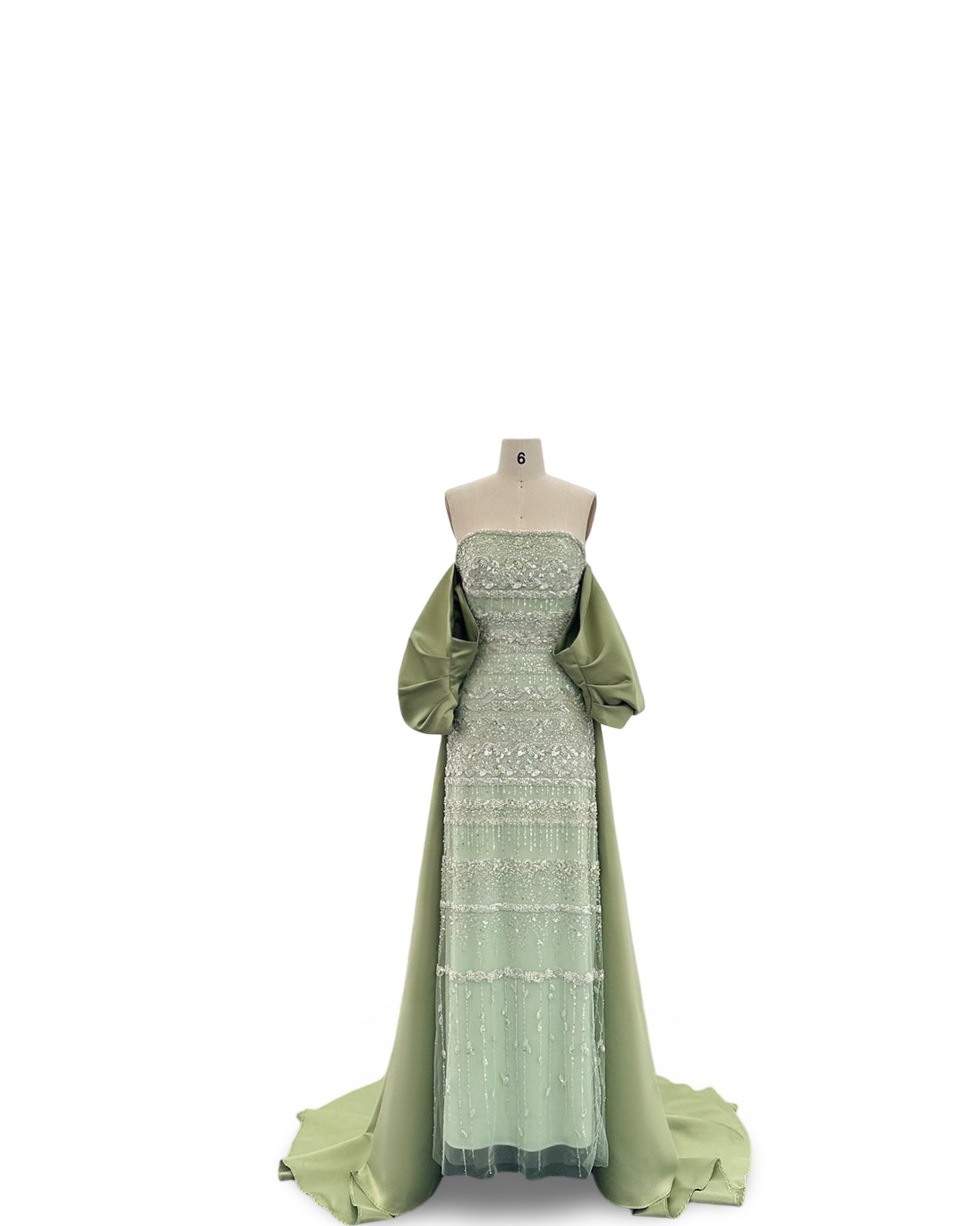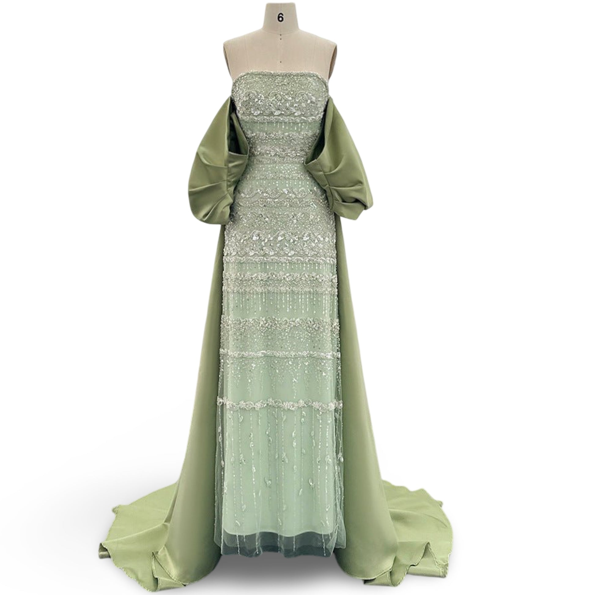 Foreign Trade Tube Top Heavy Industry Beads Off-shoulder Satin Trailing Evening Dress