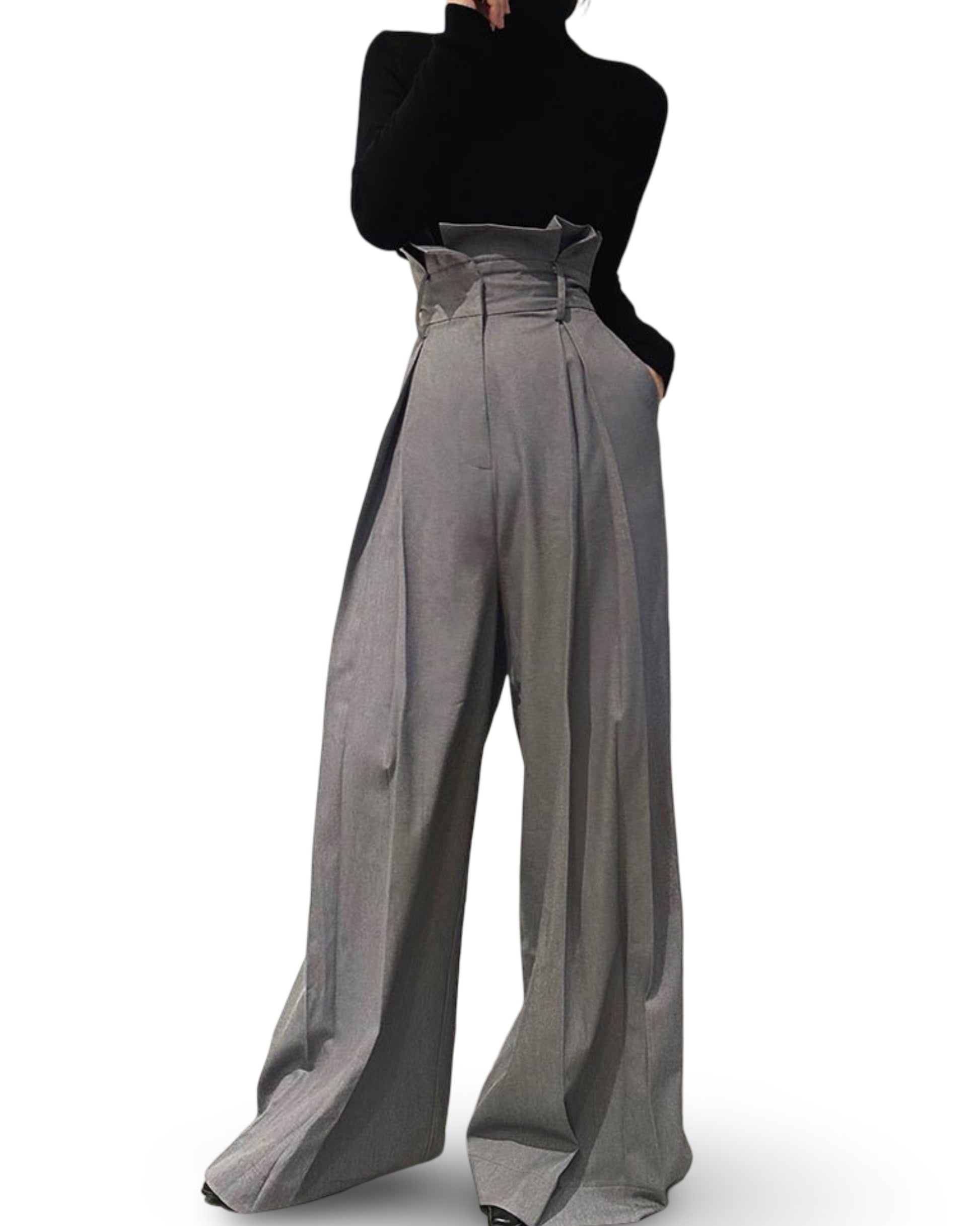 Four Seasons Design High Waist Long Legs Loose Drooping Straight Wide Leg Suit Pants