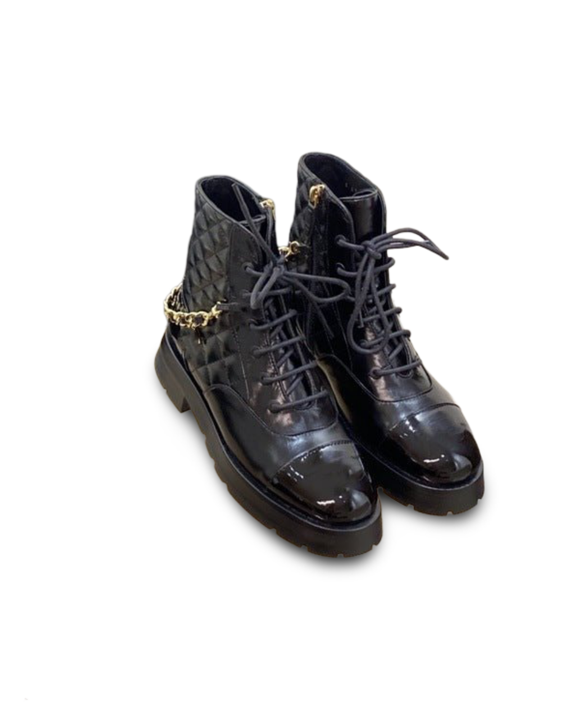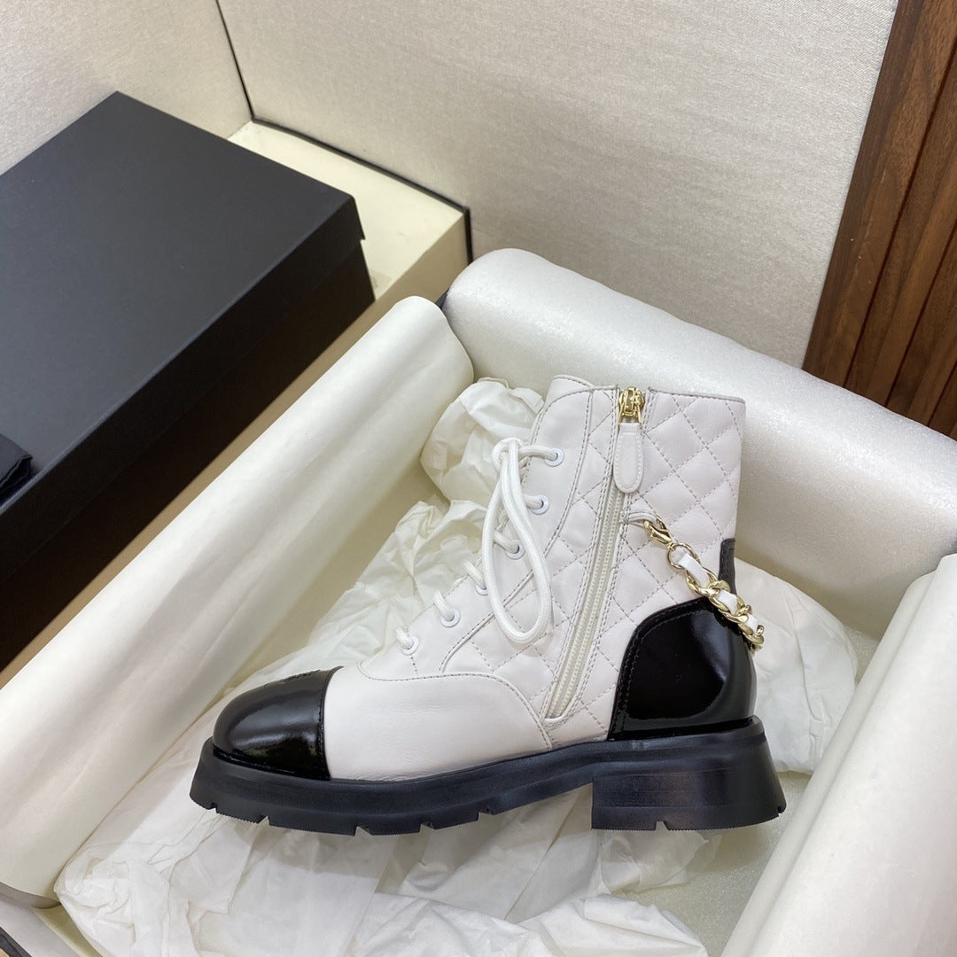 French Side Zipper Chunky Heel Round Toe Classic Style Short Boots Chain