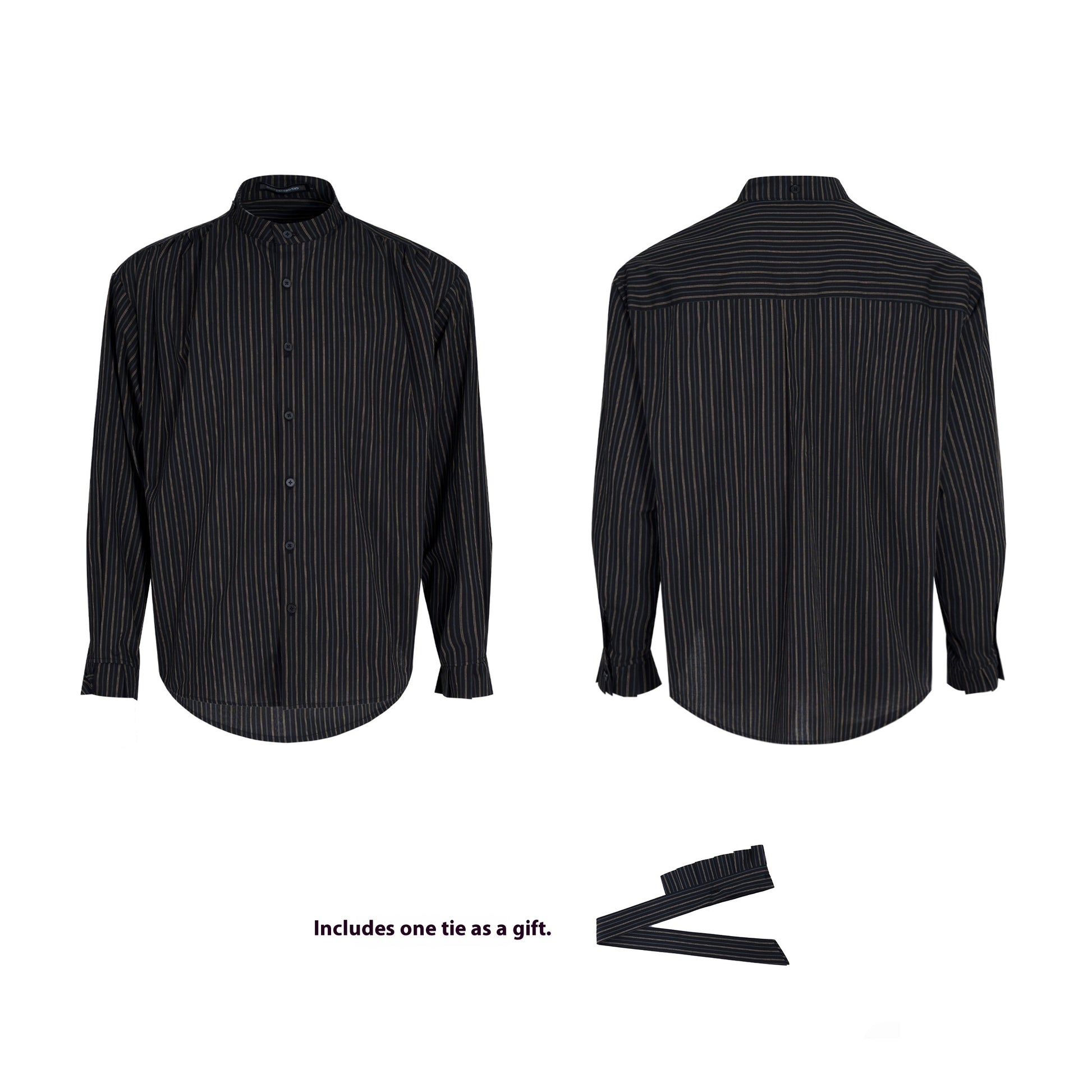 French Style Vintage Vertical Stripes Long Sleeve Tie Shirt