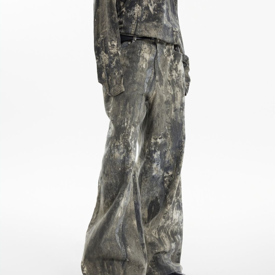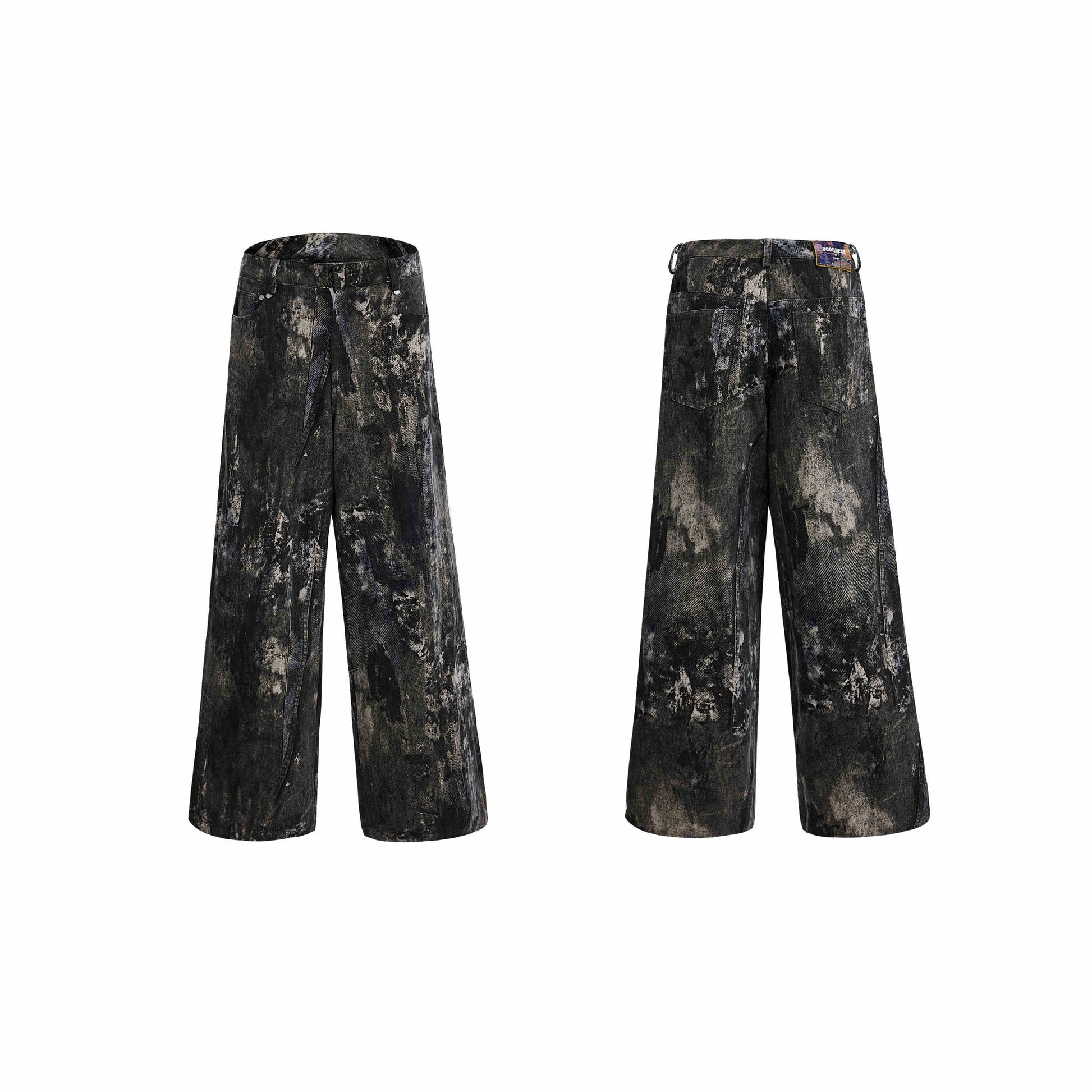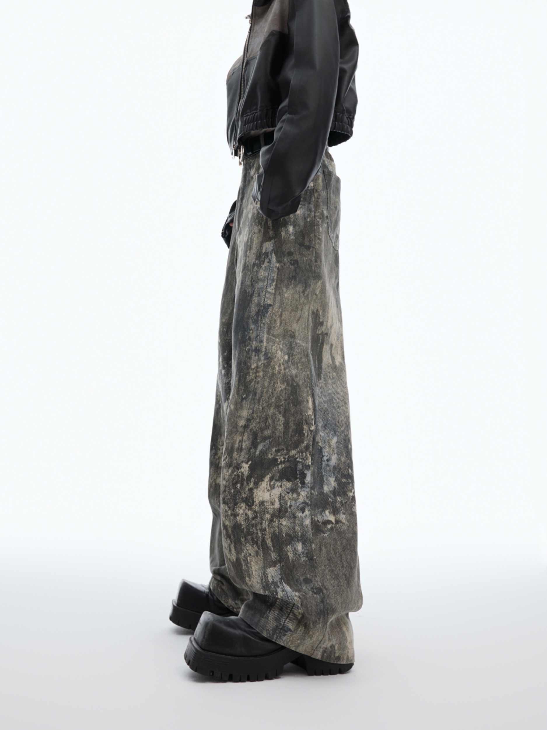 Heavy Industry 3D Stereo Printing Splash Ink Worn Jeans