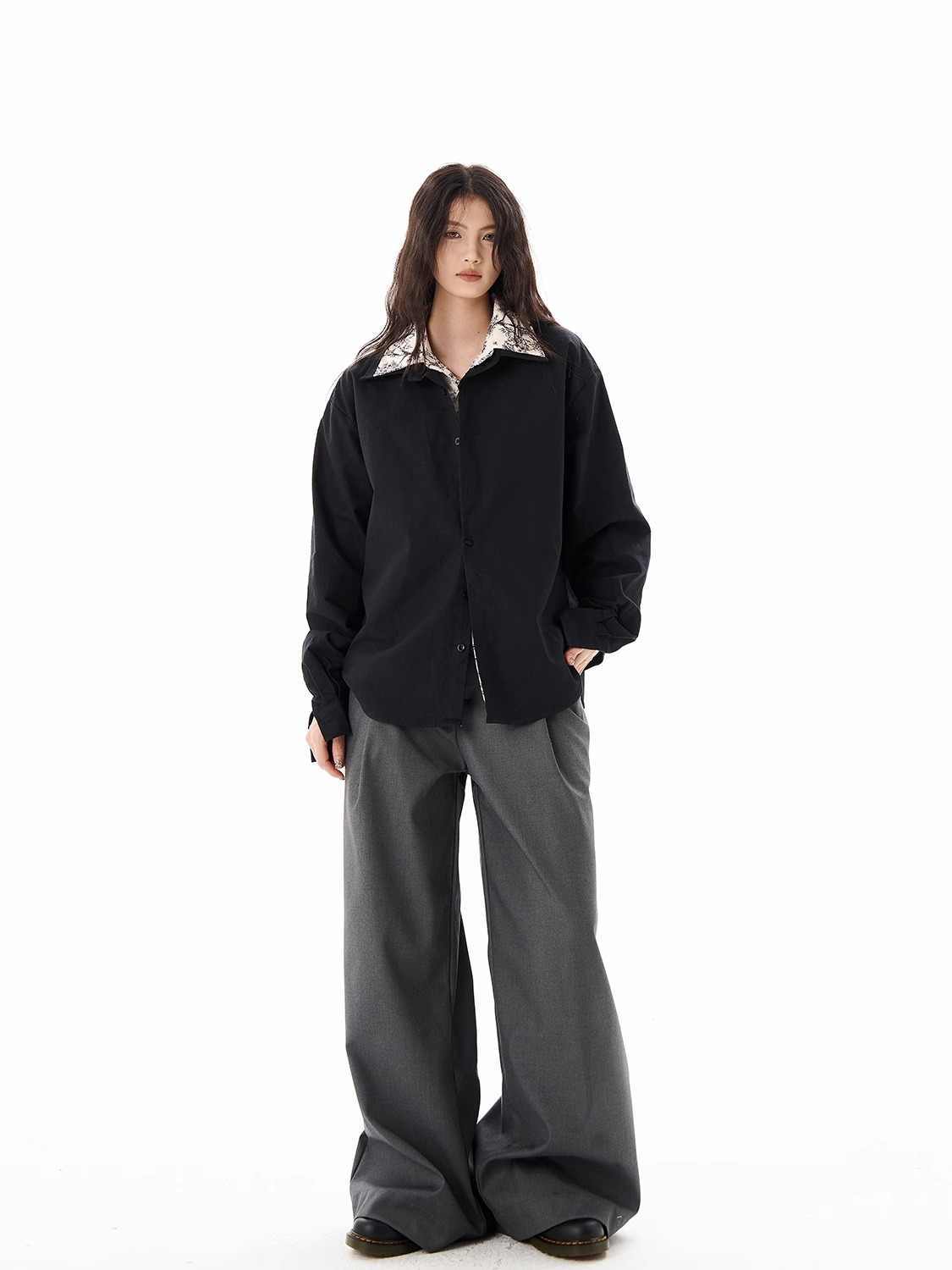 Lapel Floral False Two-piece Patchwork Loose White Long Sleeve Shirt Coat