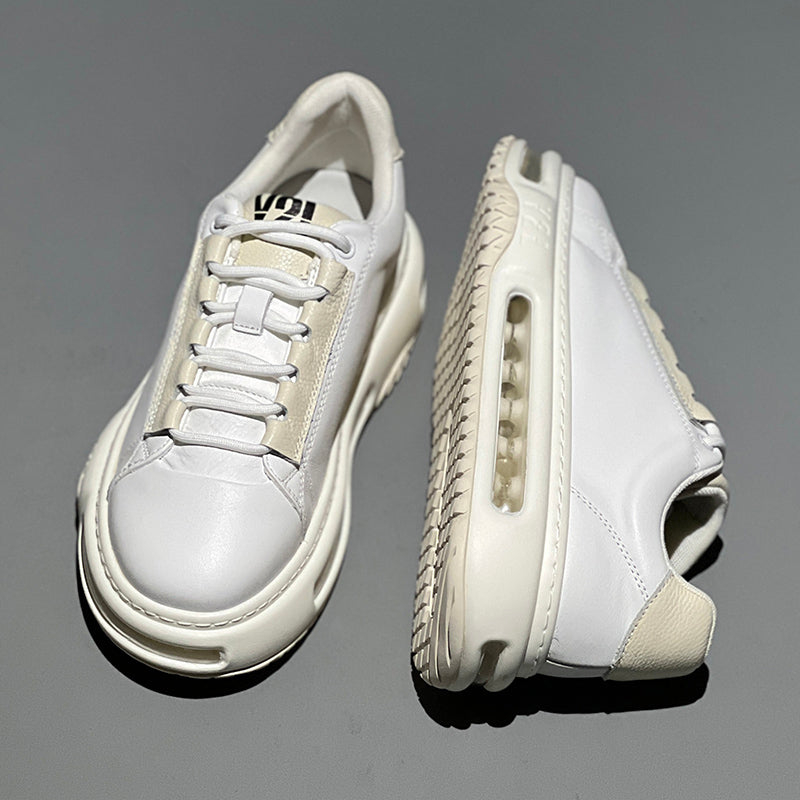 Leather Upper Sneaker with Exposed Air Midsole and Raised Platform