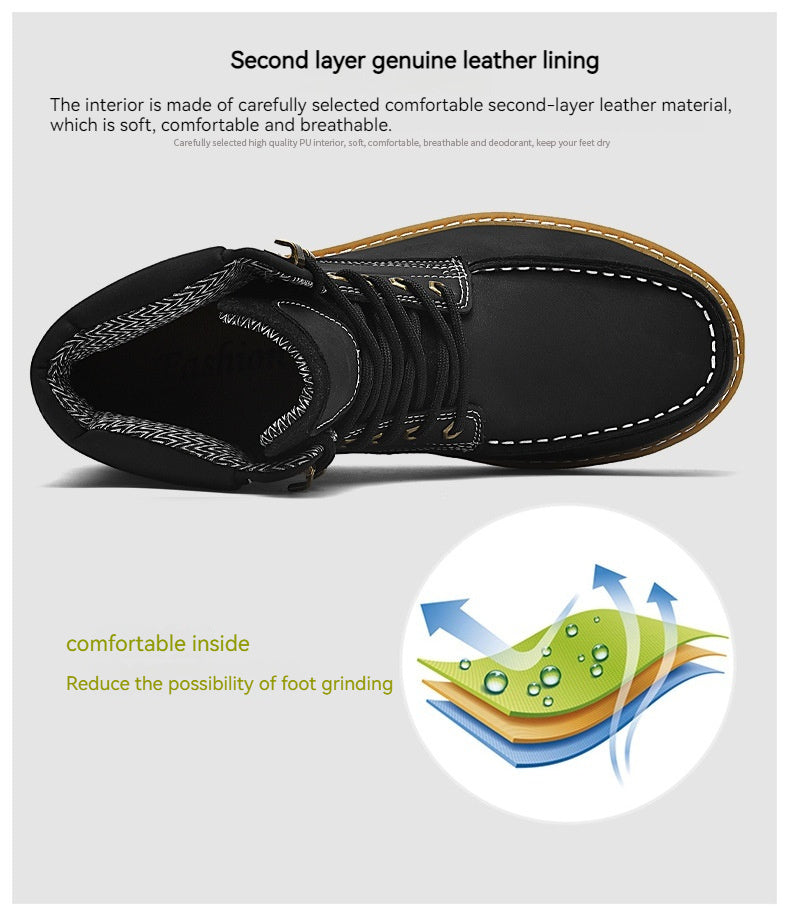 Men's British Casual Trend Fashion High-top Genuine Leather Workwear Boots