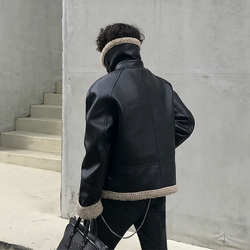 Men's Fleece Padded Collar Lambskin Leather Jacket