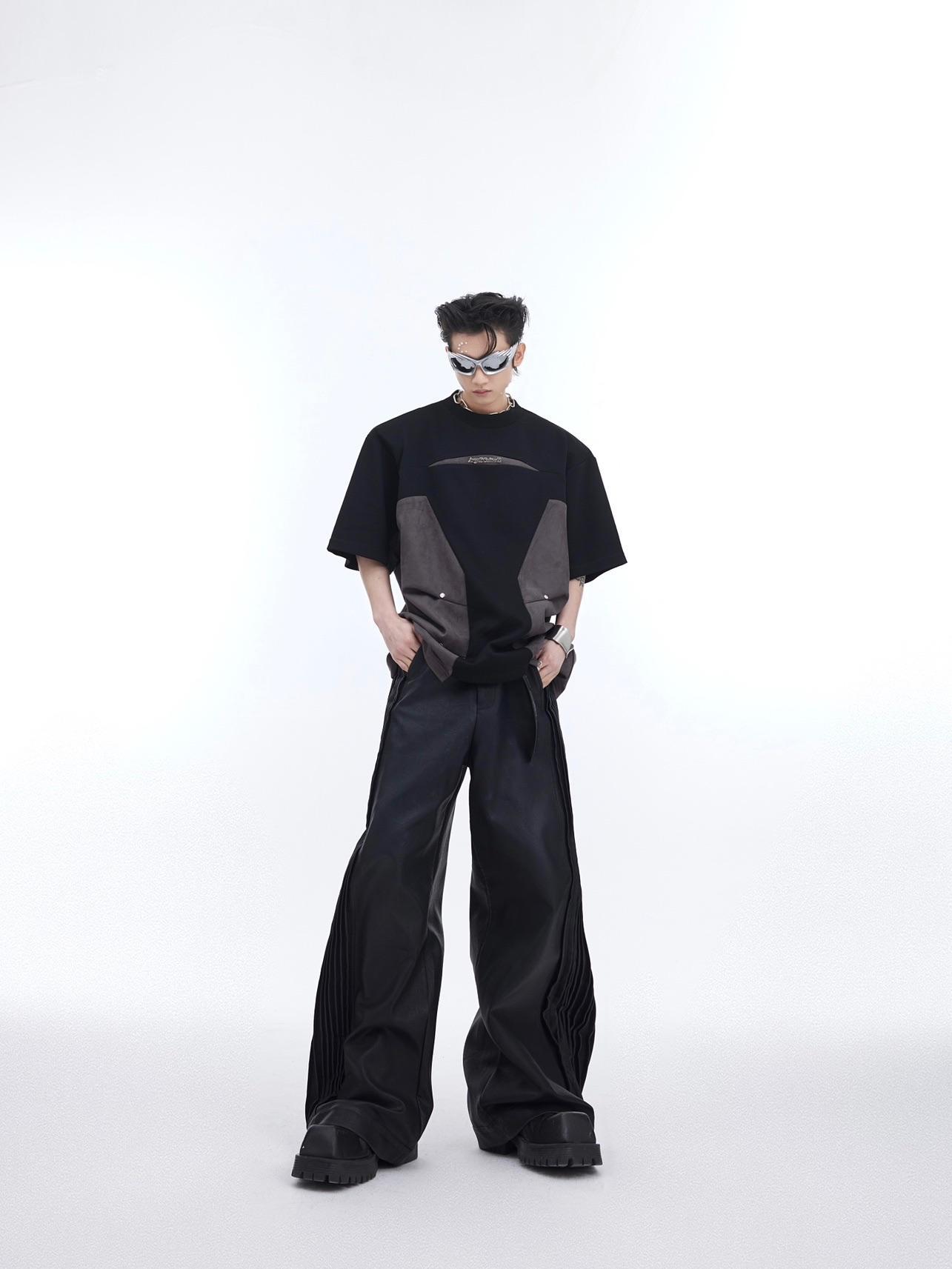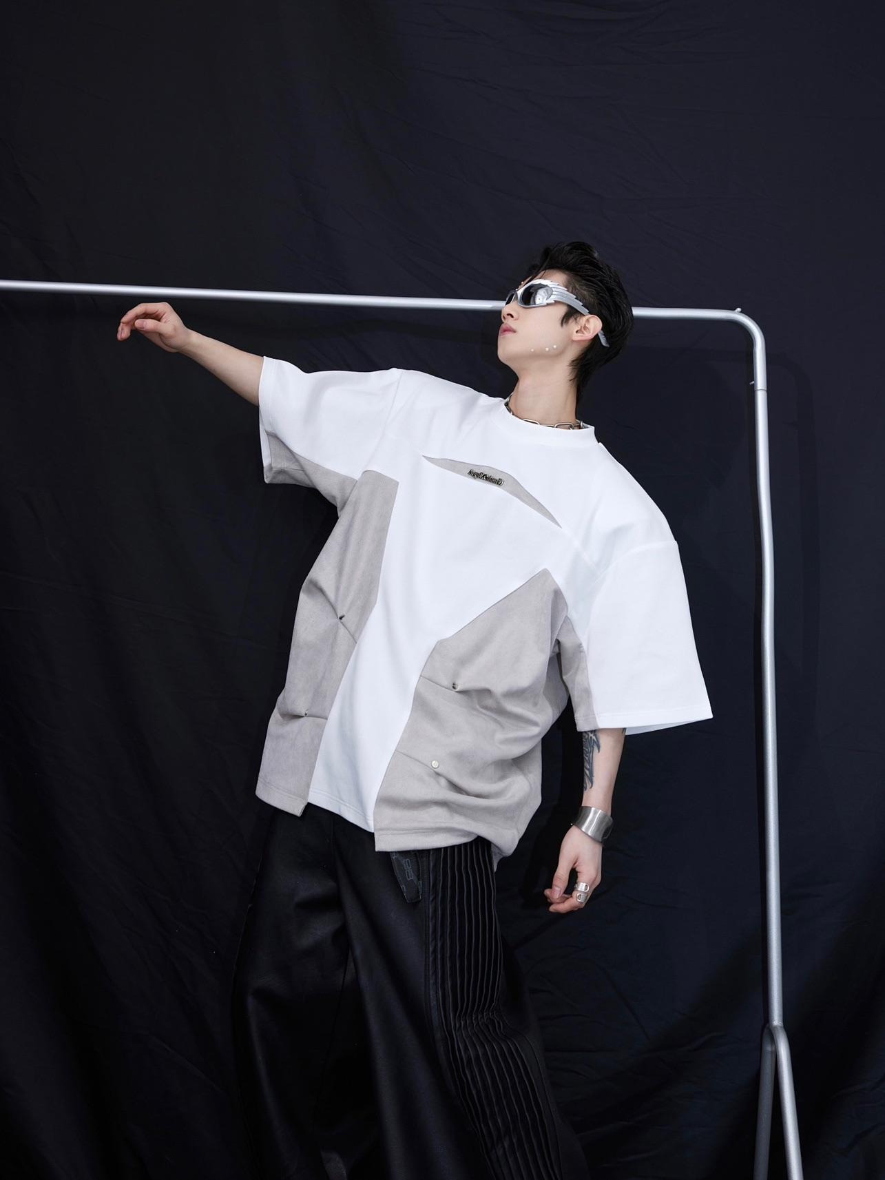 Men's Heavy Industry Niche Color Contrast Patchwork Padded Shoulder Short-sleeved T-shirt