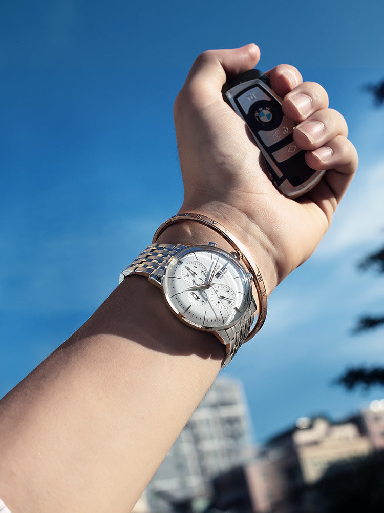 Color: Silver Shell silver surface silver steel belt, gold steel belt between gold and silver surface, silver shell black surface silver steel belt, silver shell silver surface bamboo pattern black belt, rose gold and silver surface bamboo grain brown belt, silver shell black surface black belt