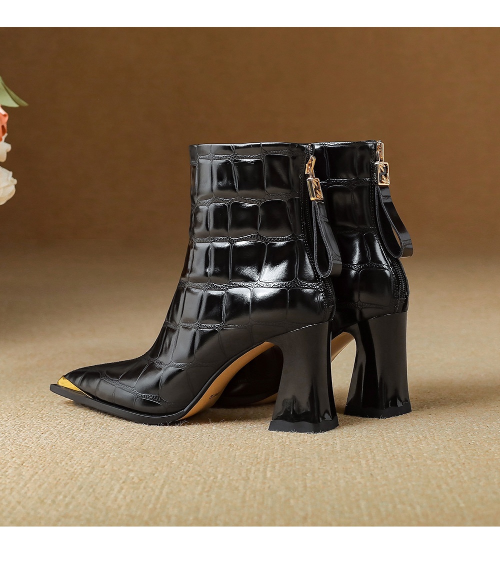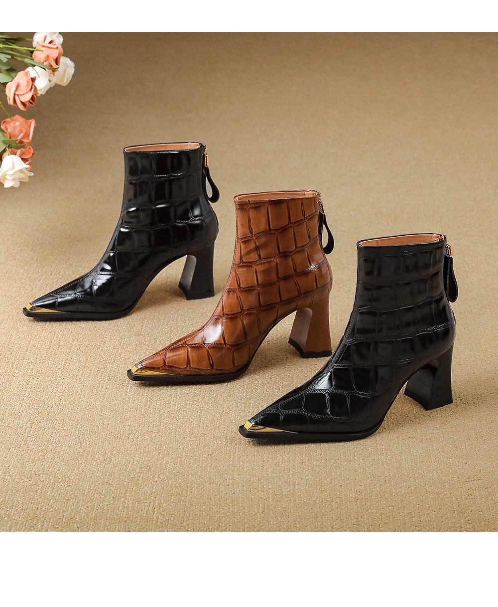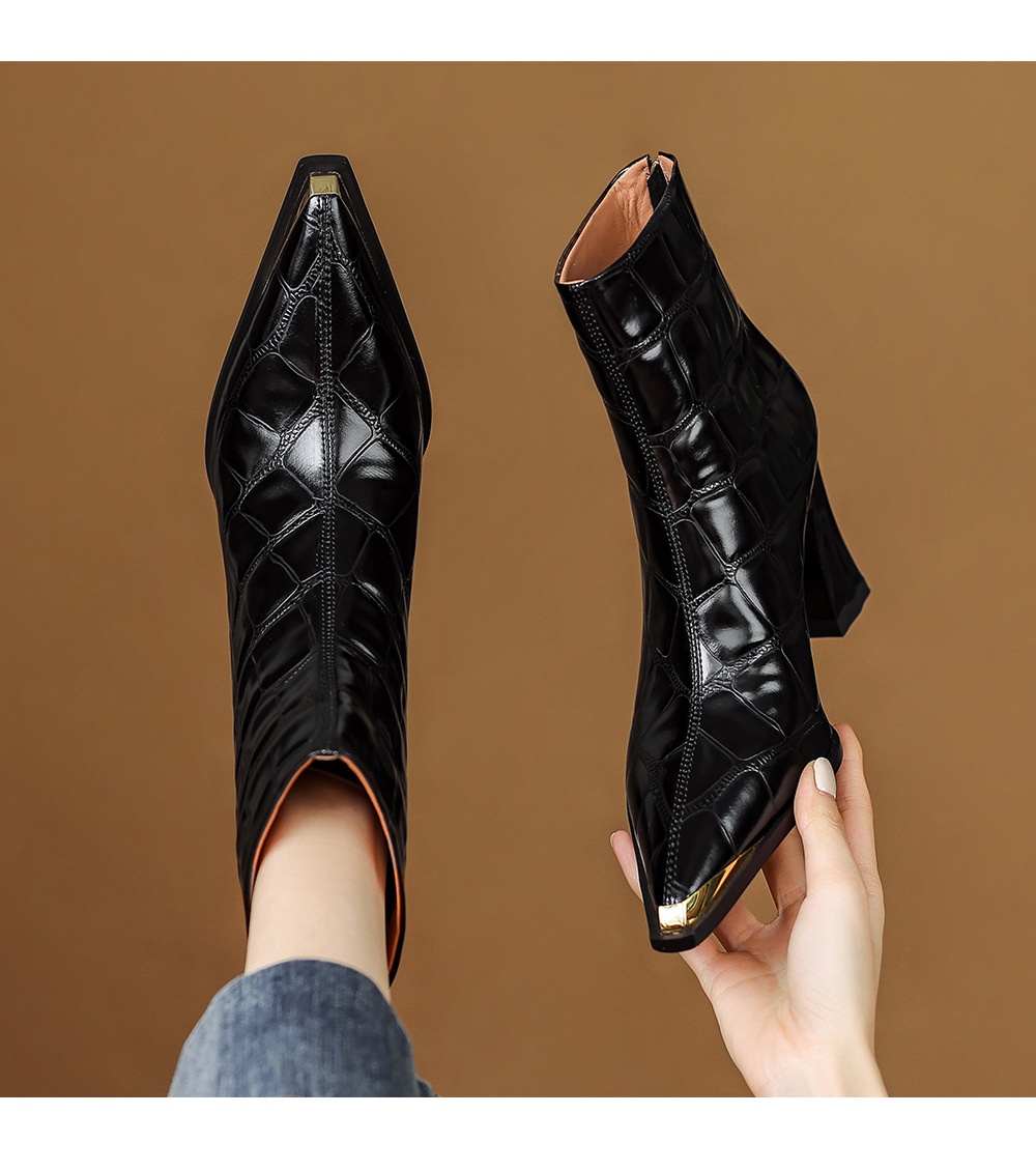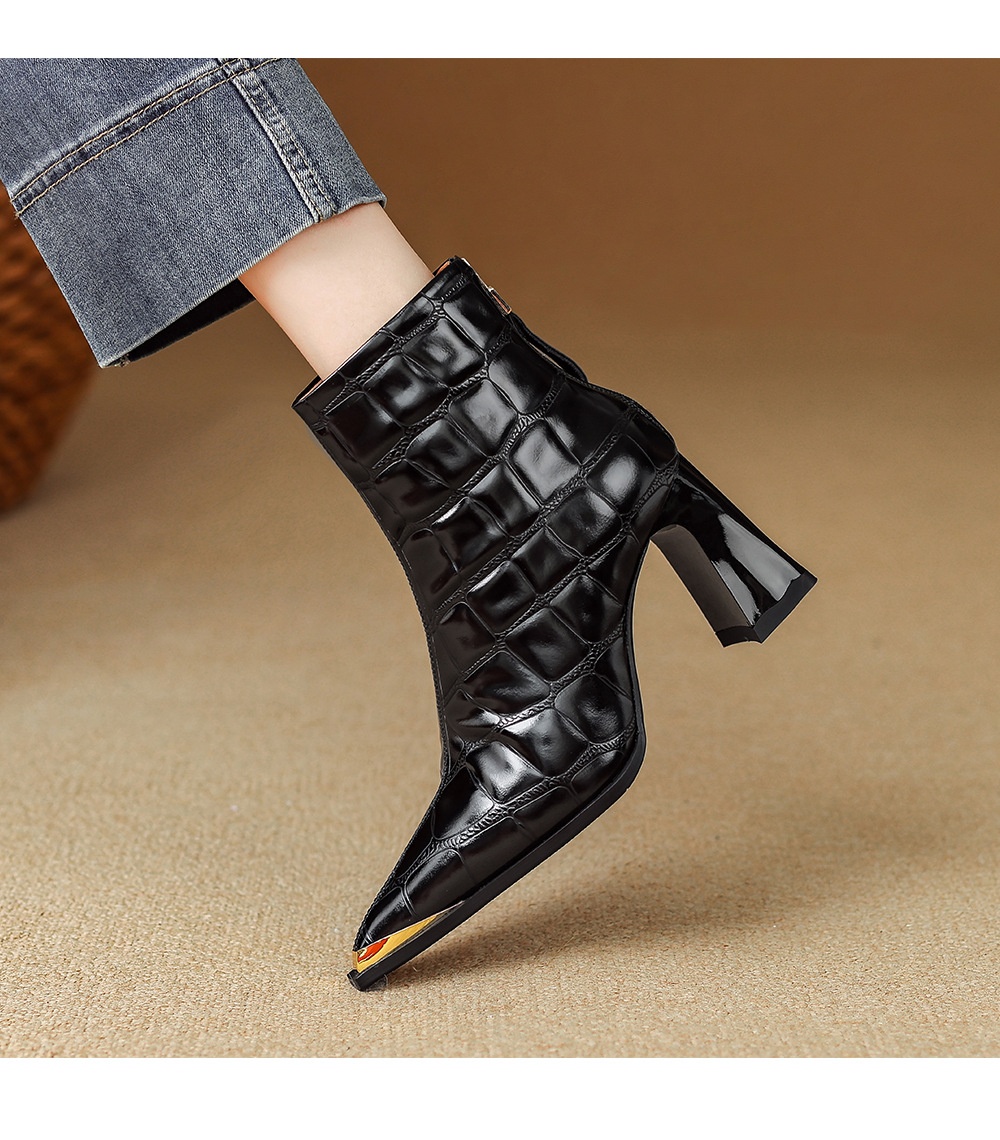 First-Layer Cowhide Structured Heel Boots