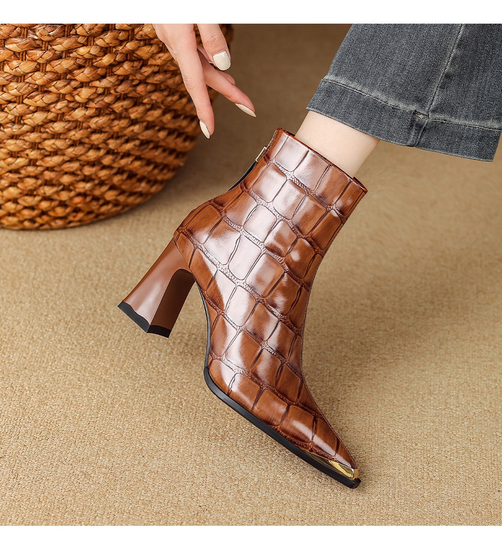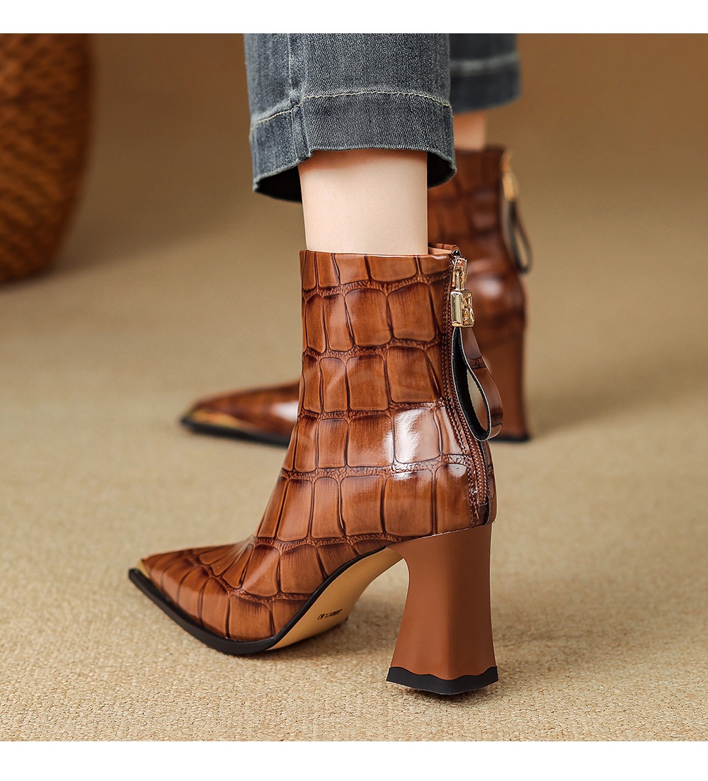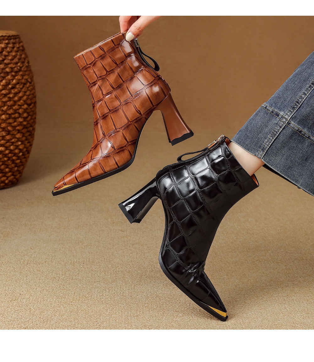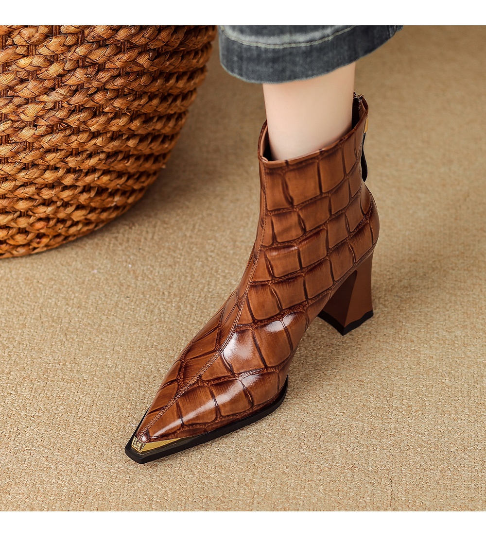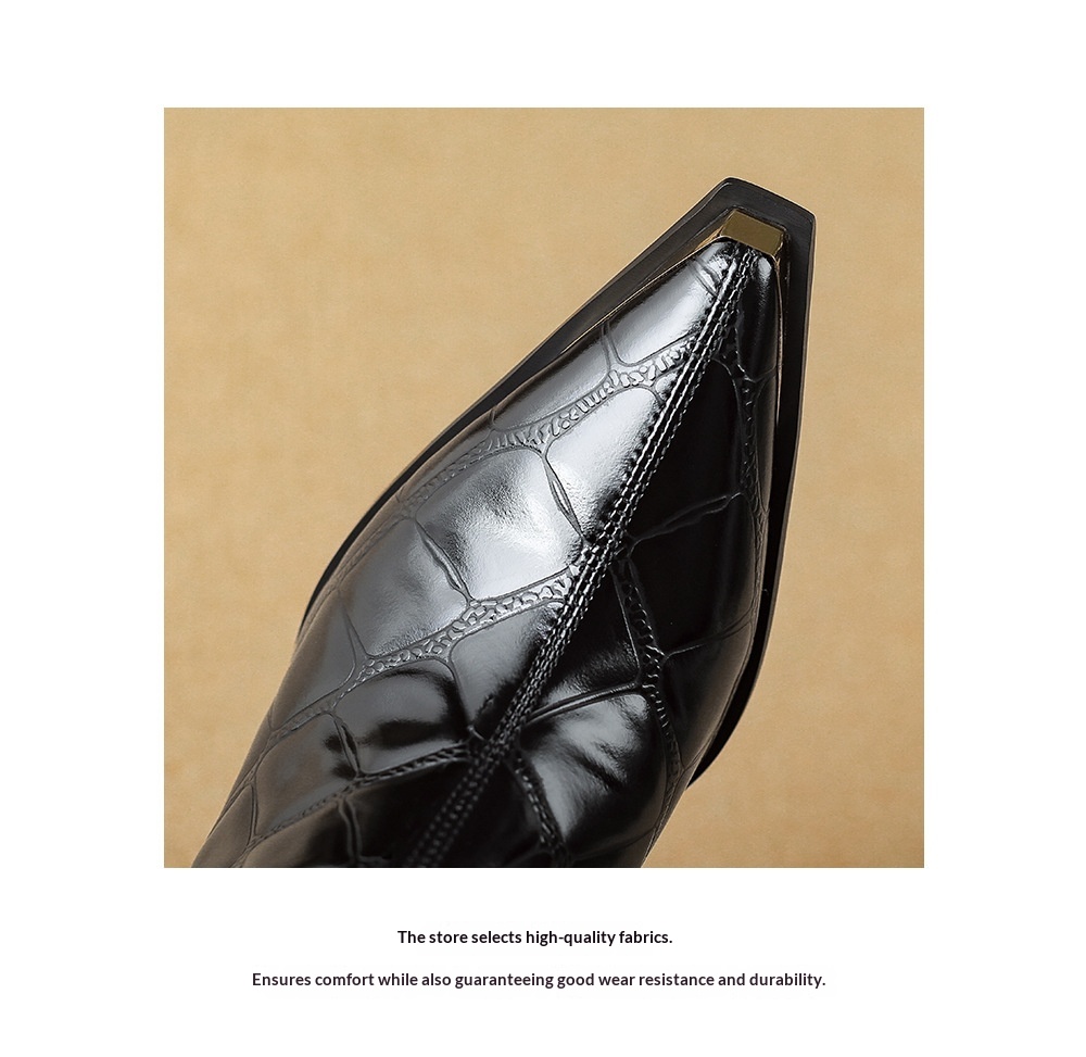 First-Layer Cowhide Structured Heel Boots