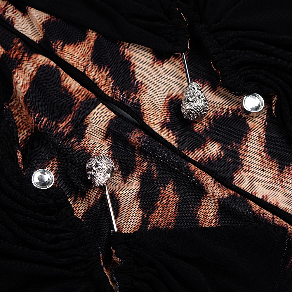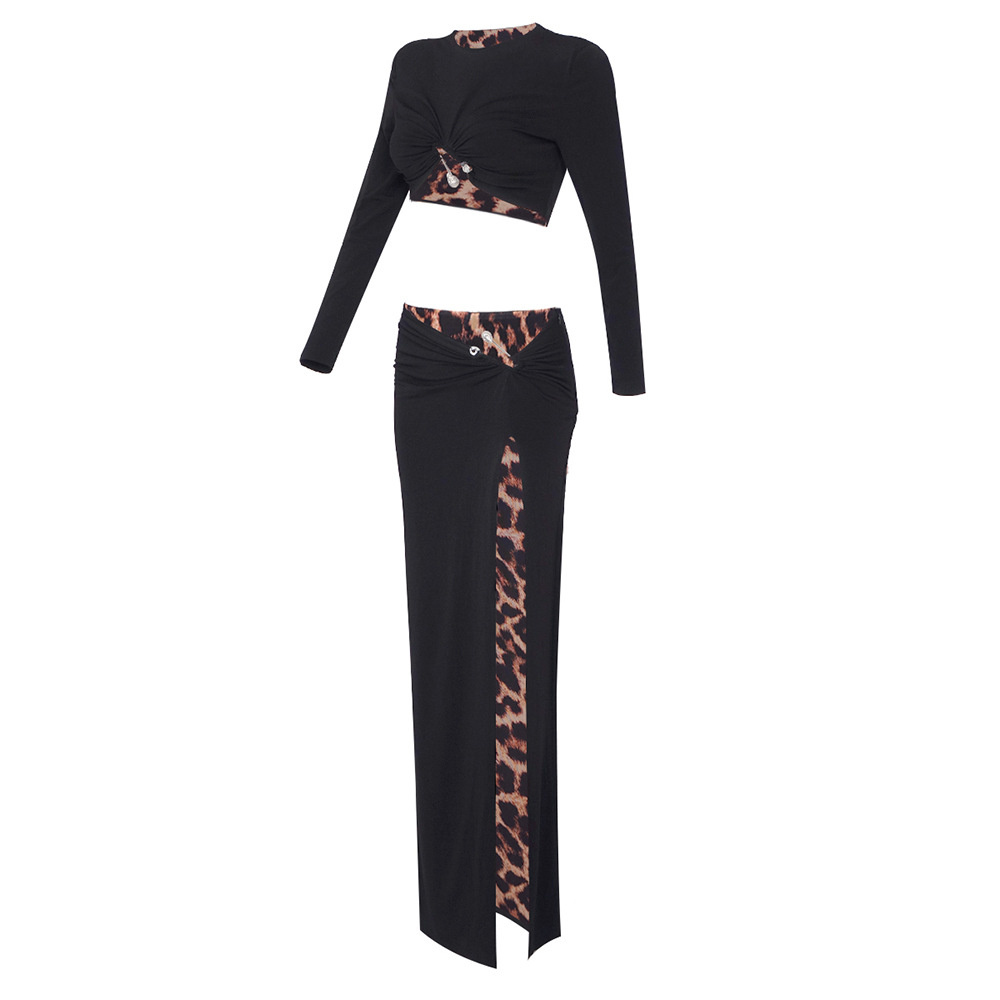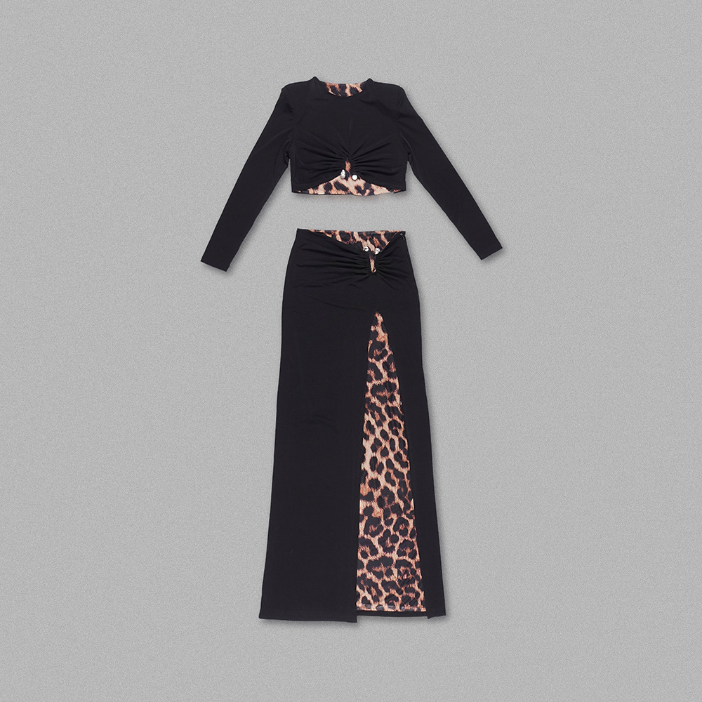 New Black Casual Fashion Two-piece Suit Skirt Suit Leopard Print Lining