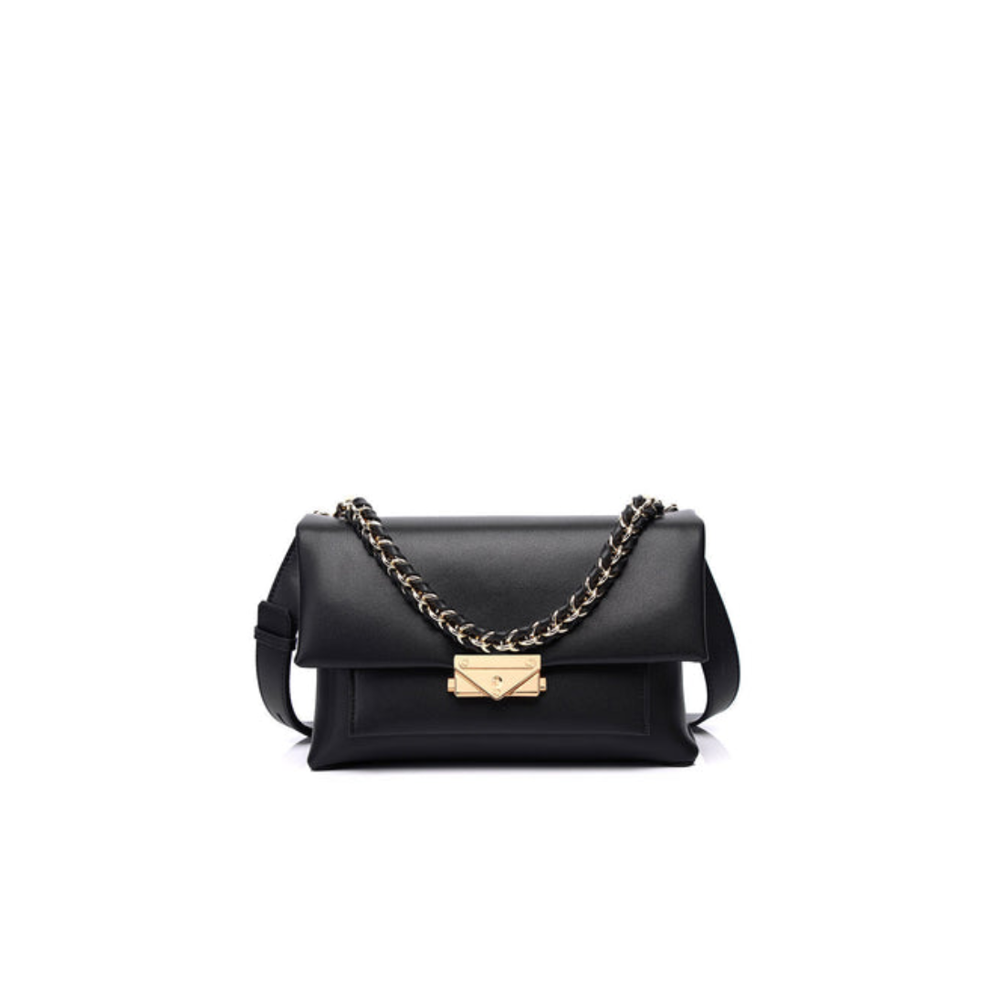 Structured Flap Shoulder Bag with Chain Carry