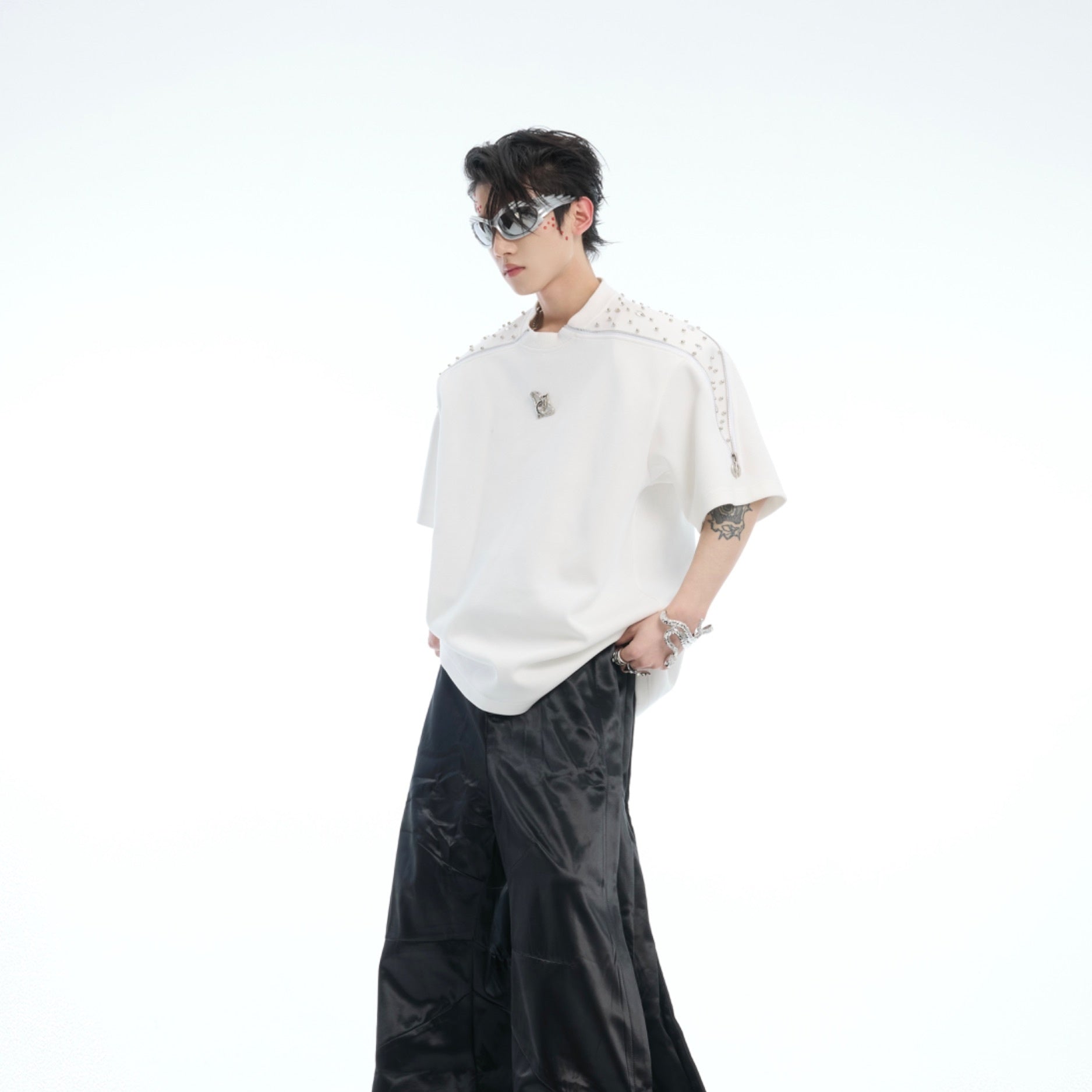 Niche Exquisite Rhinestone Metal Zipper Design Short Sleeve