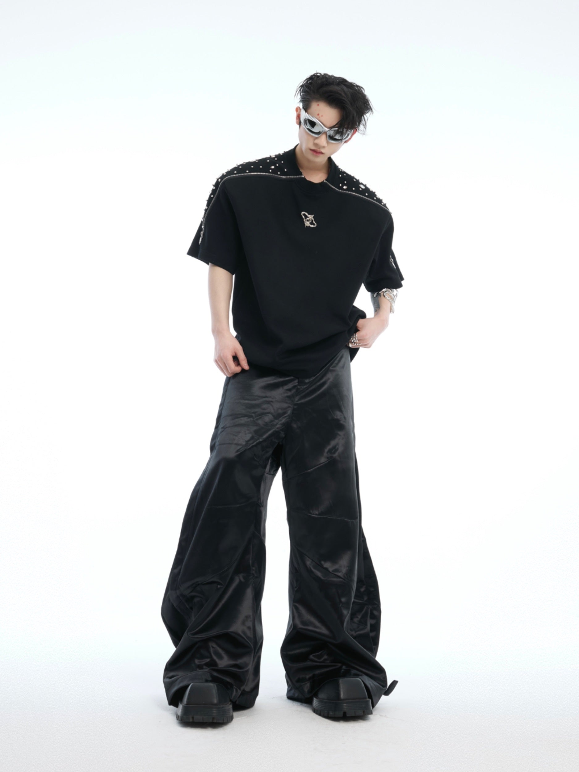 Style details: Hot drilling, stitching, patchwork, metal decoration