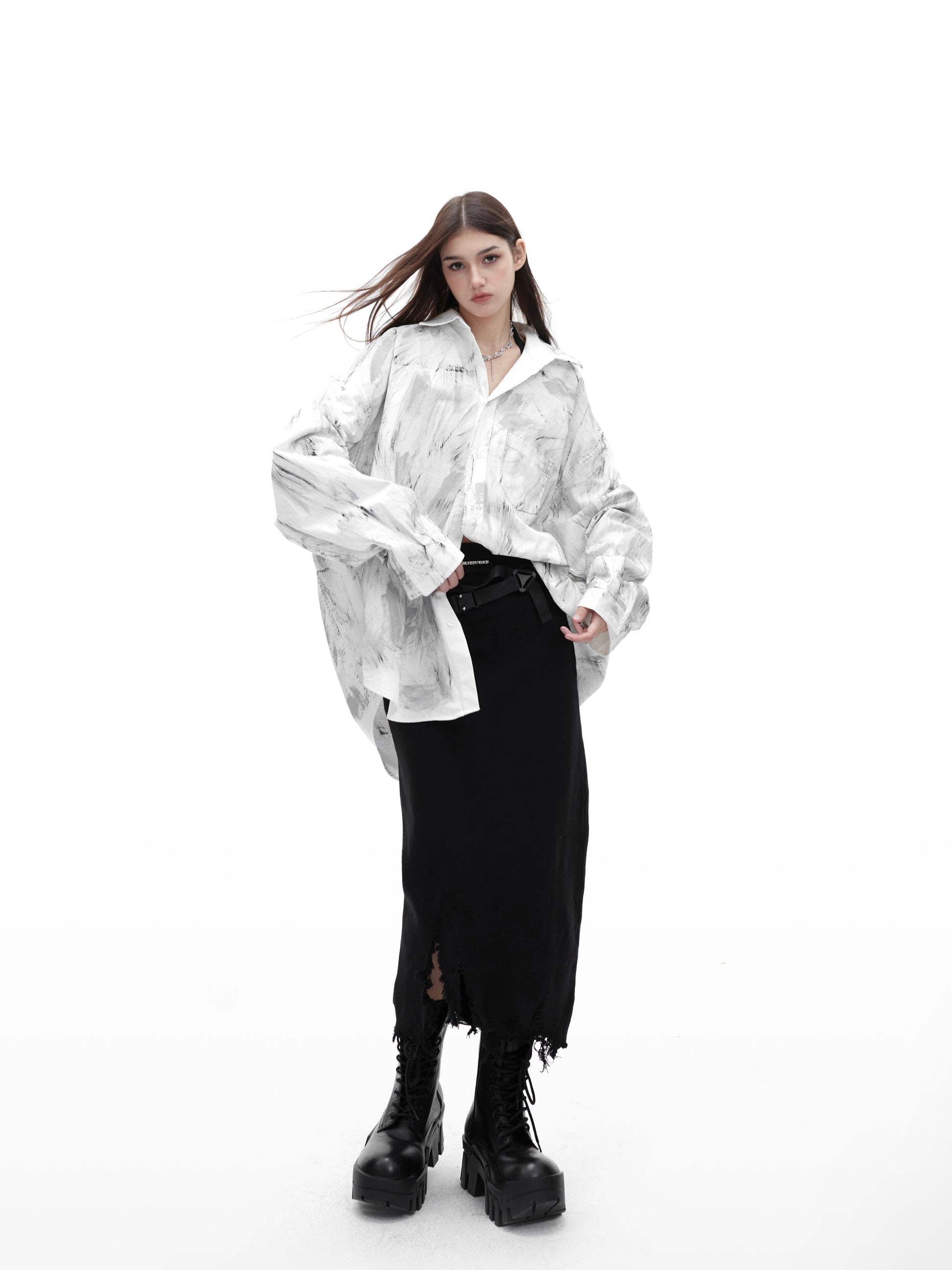 Niche Heavy Industry Distressed Brushed Loose Profile Shirt