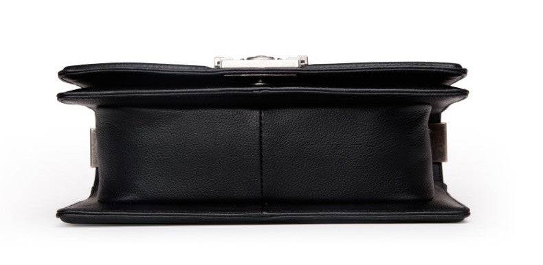 Structured Chain Shoulder Bag — First-Layer Cowhide with Embossed Panel