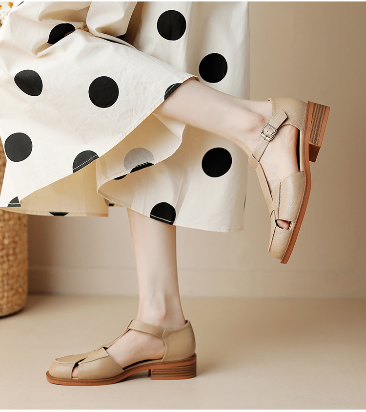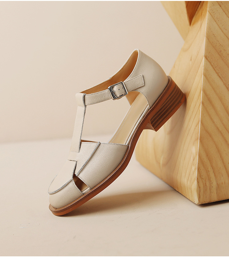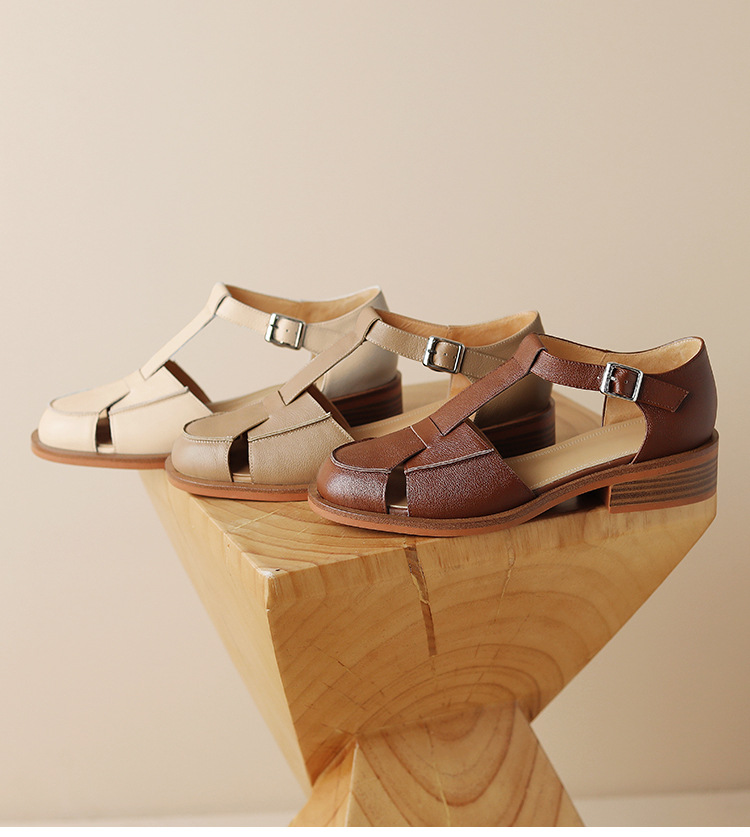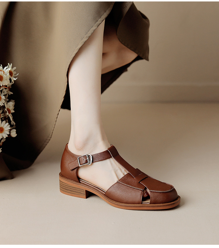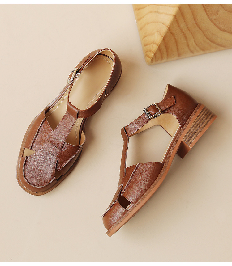 This is a closed-toe T-strap leather sandal, built for people who want airflow without sacrificing structure.