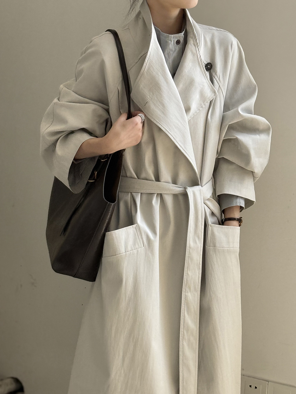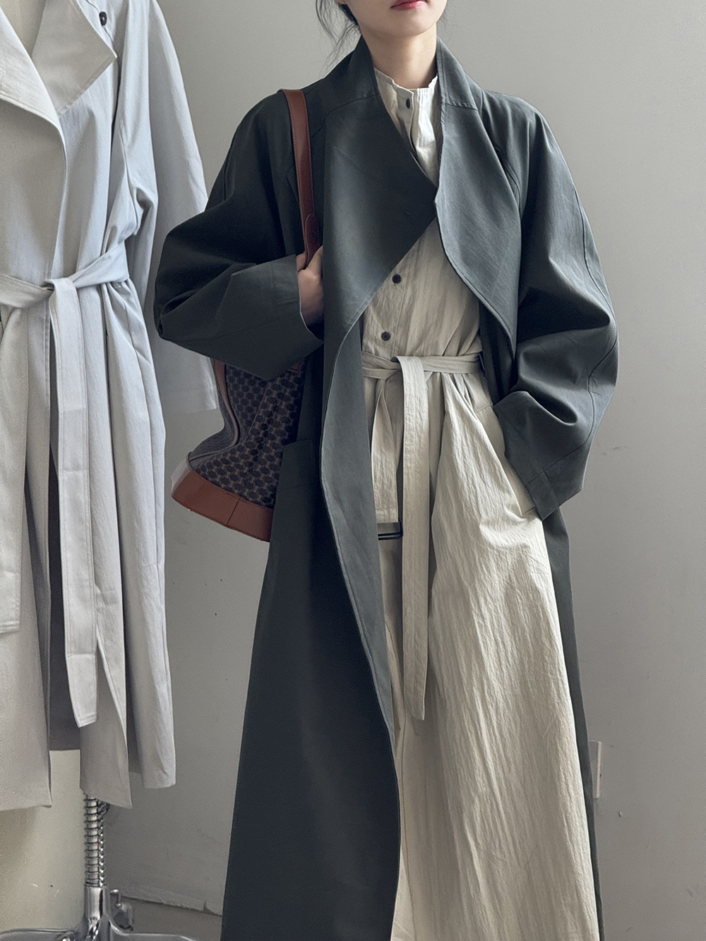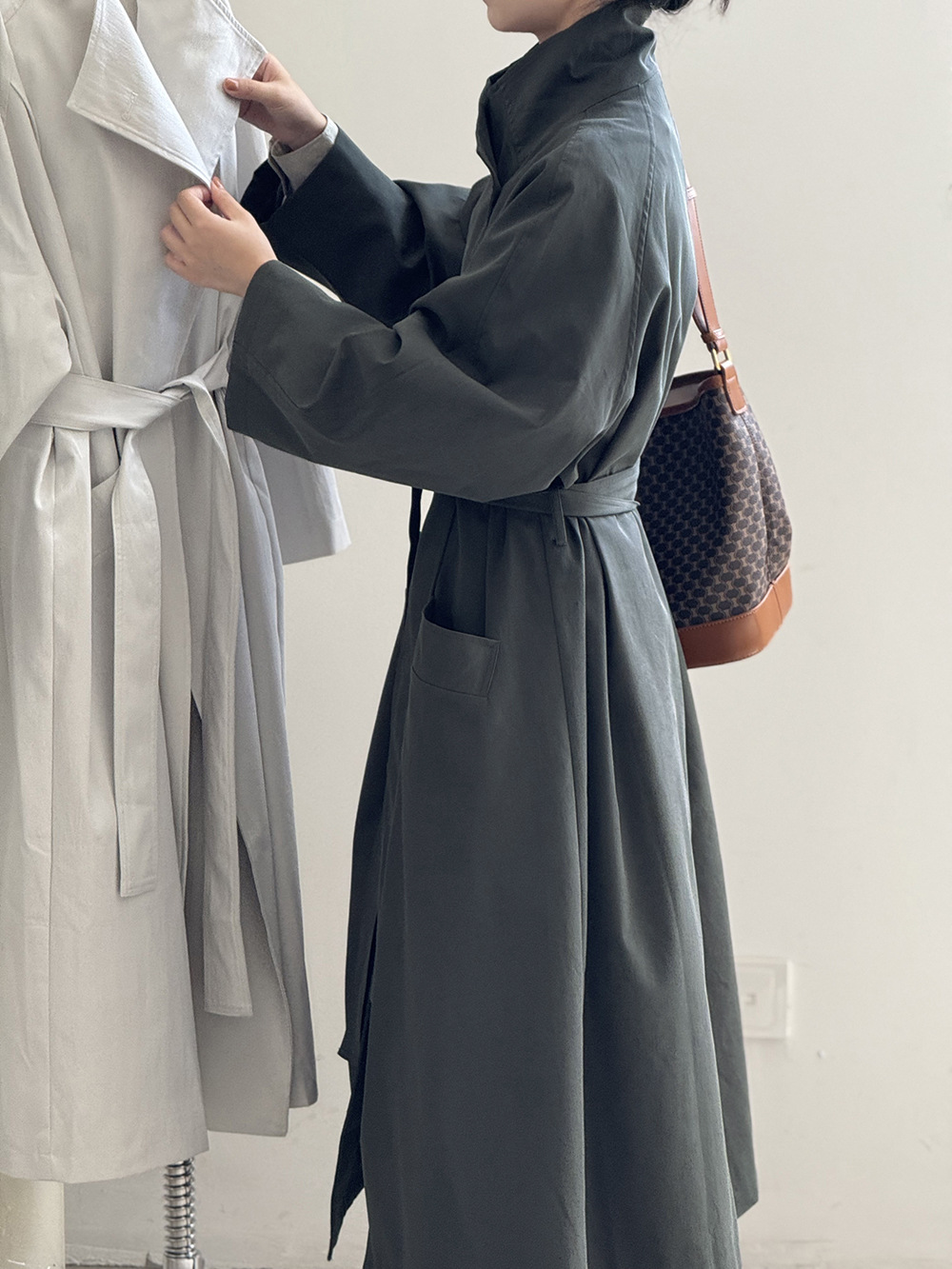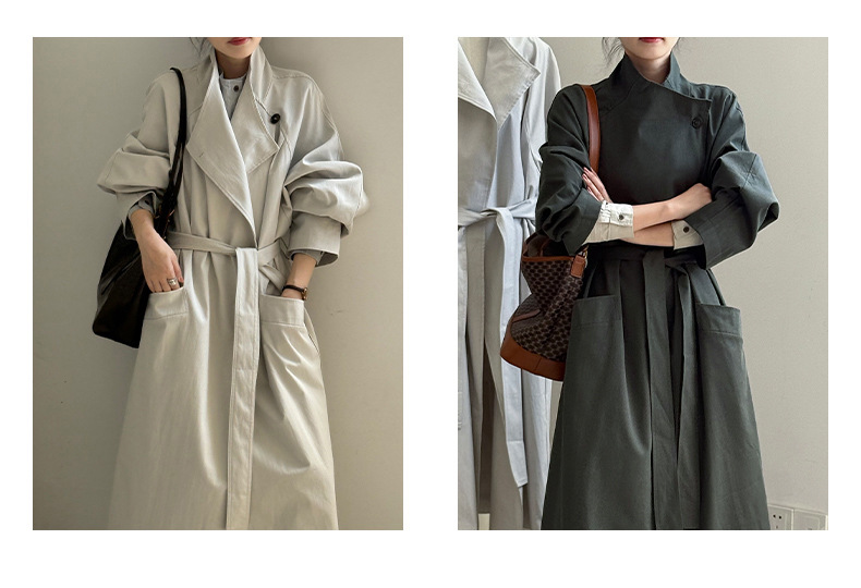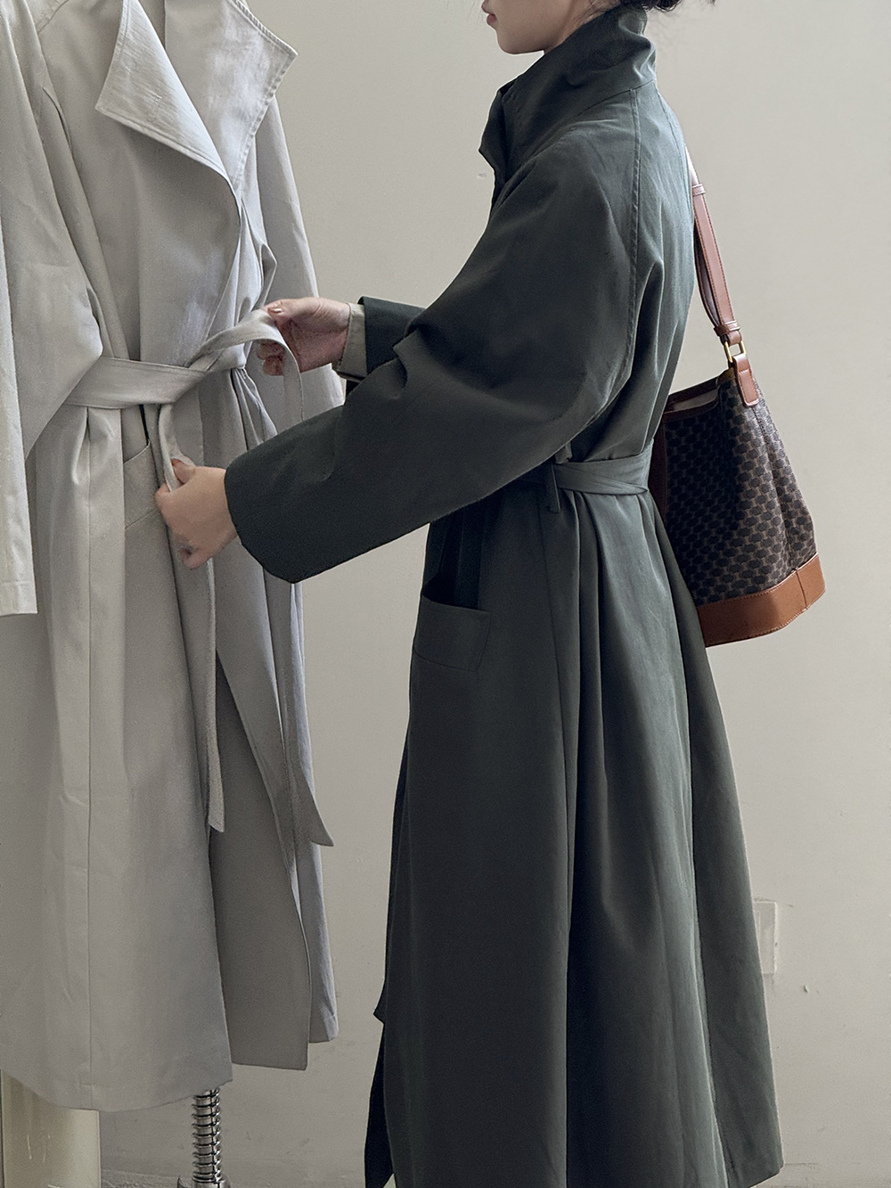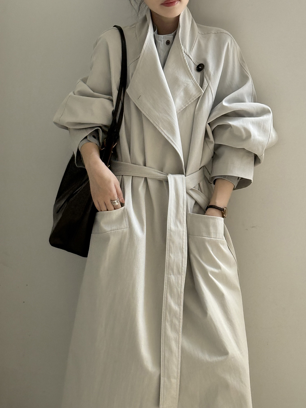 Retro Lapels One Button Mid-length Trench Coat Women's Belt Coat