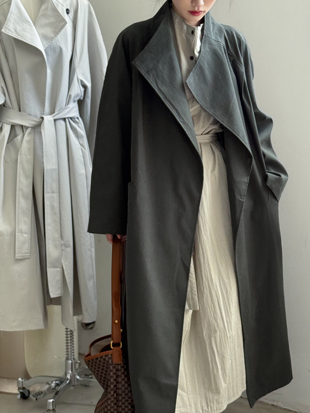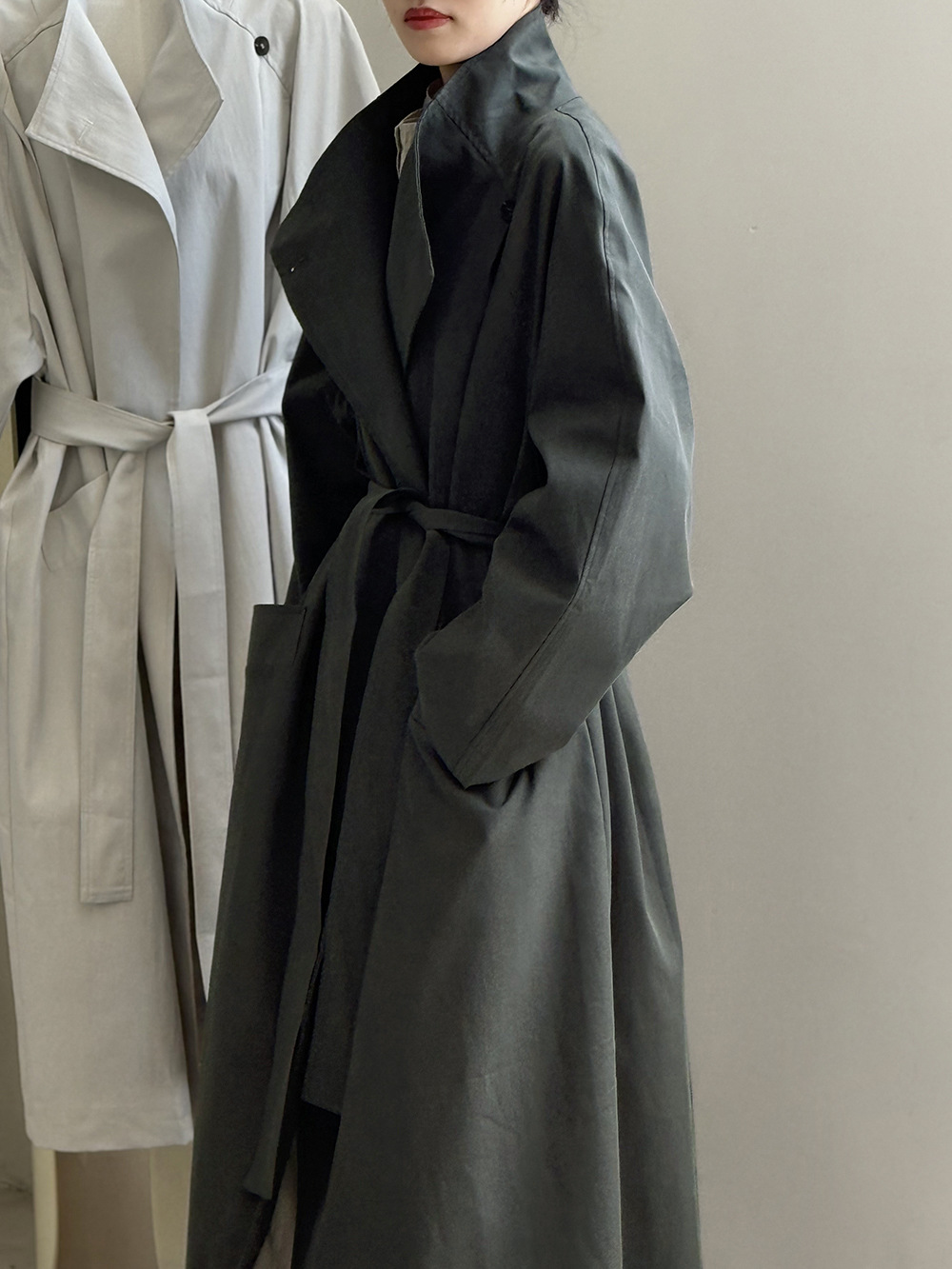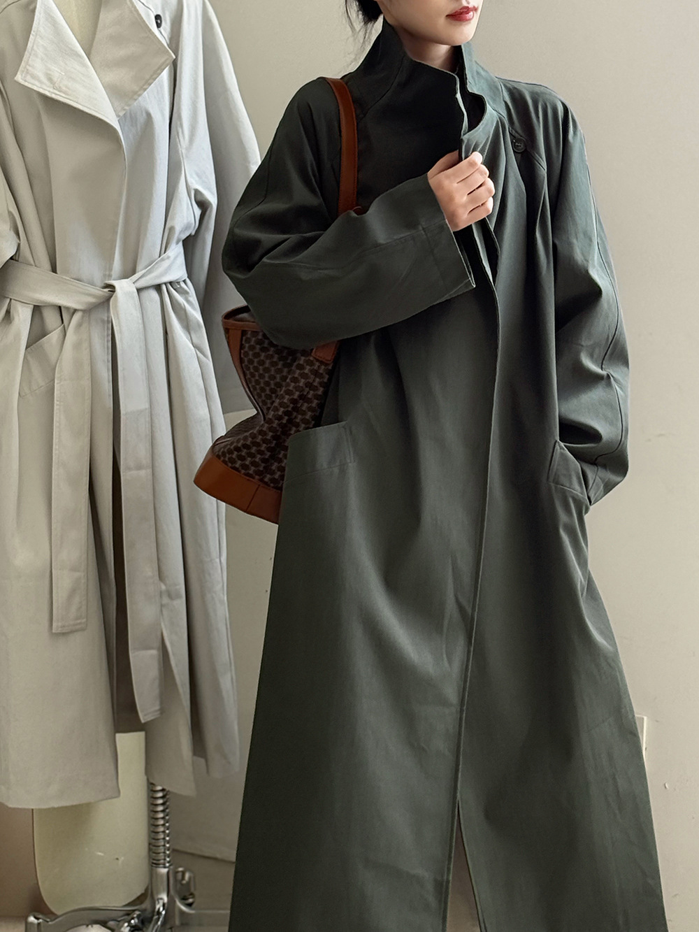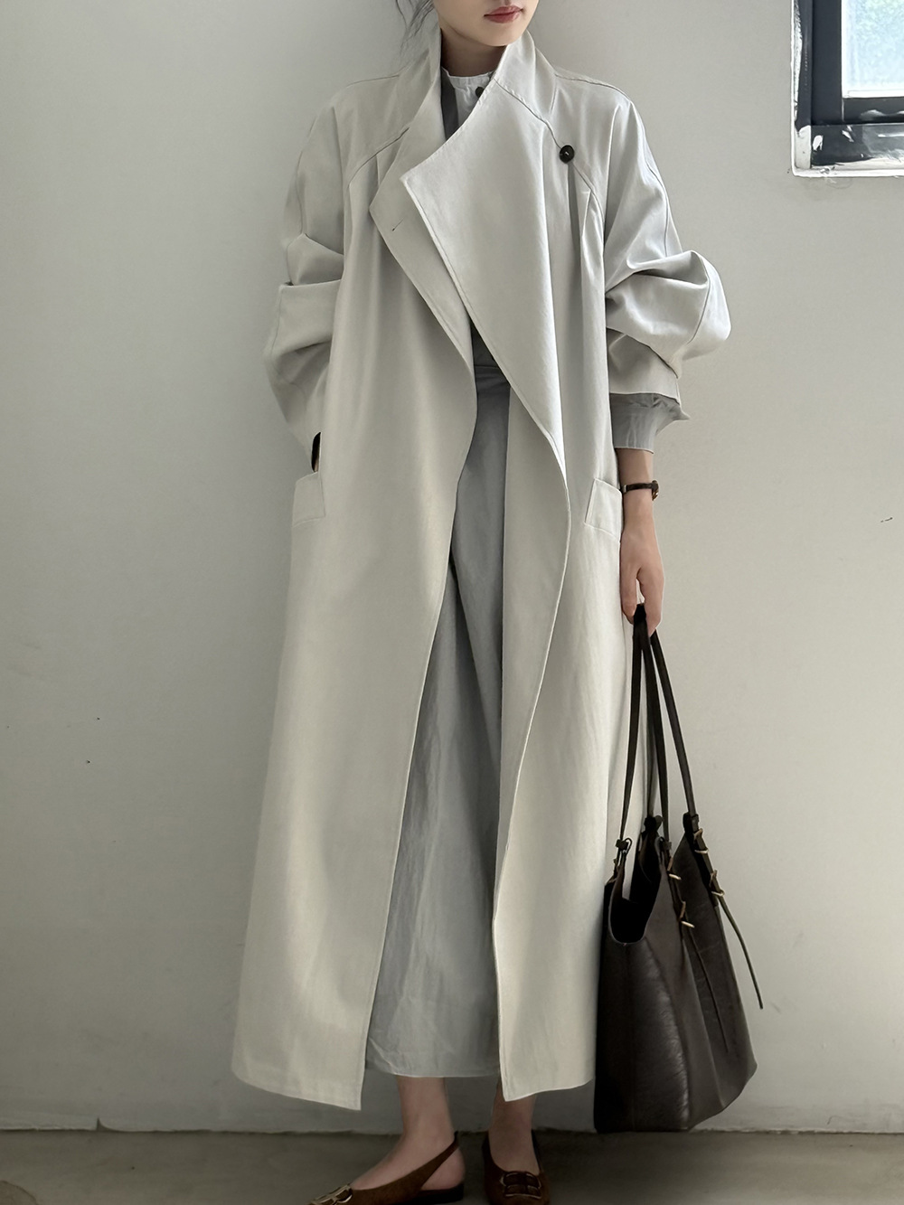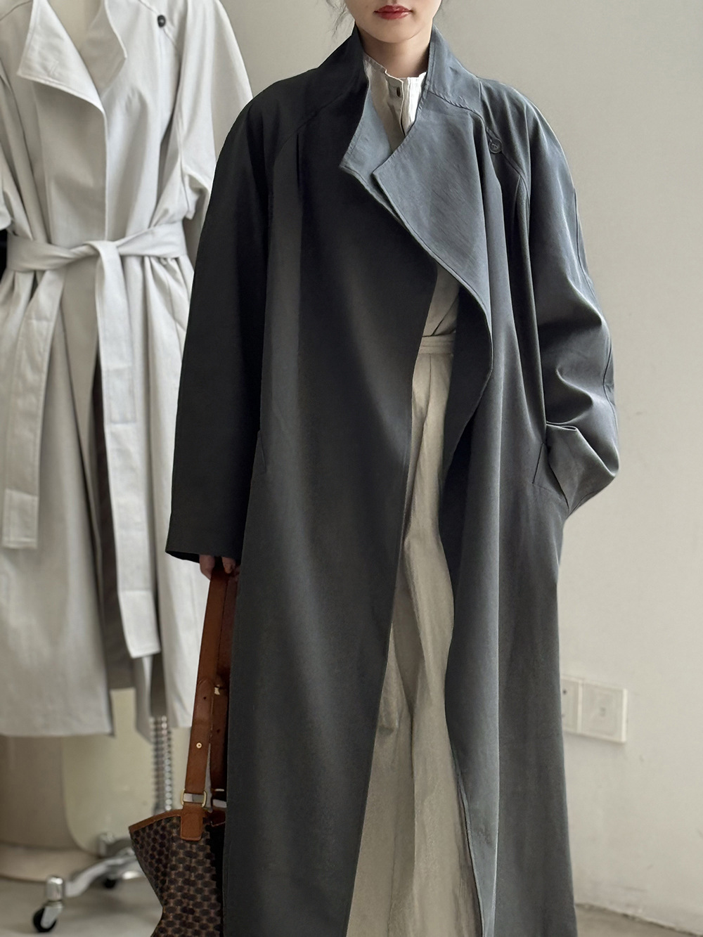 Retro Lapels One Button Mid-length Trench Coat Women's Belt Coat