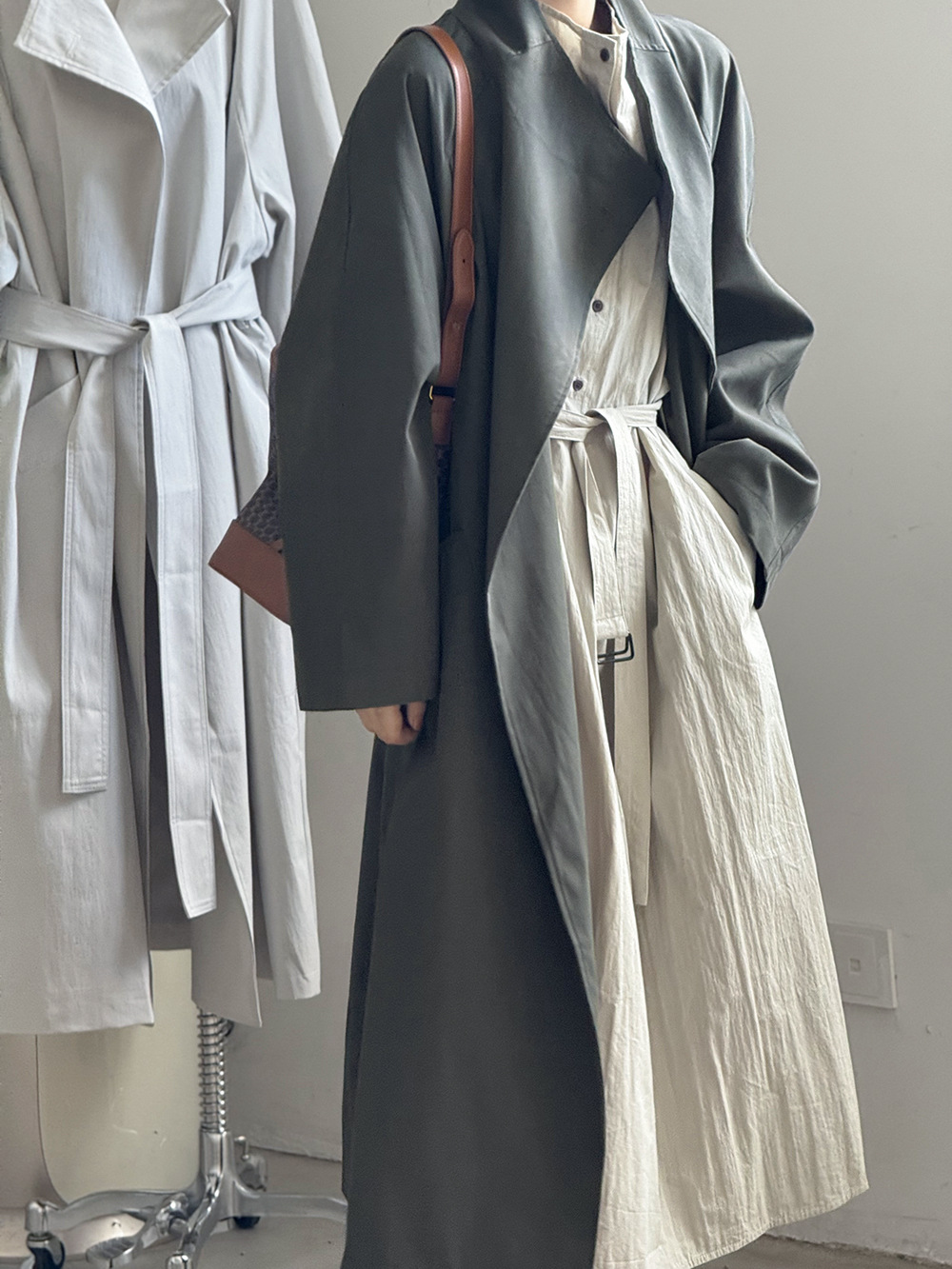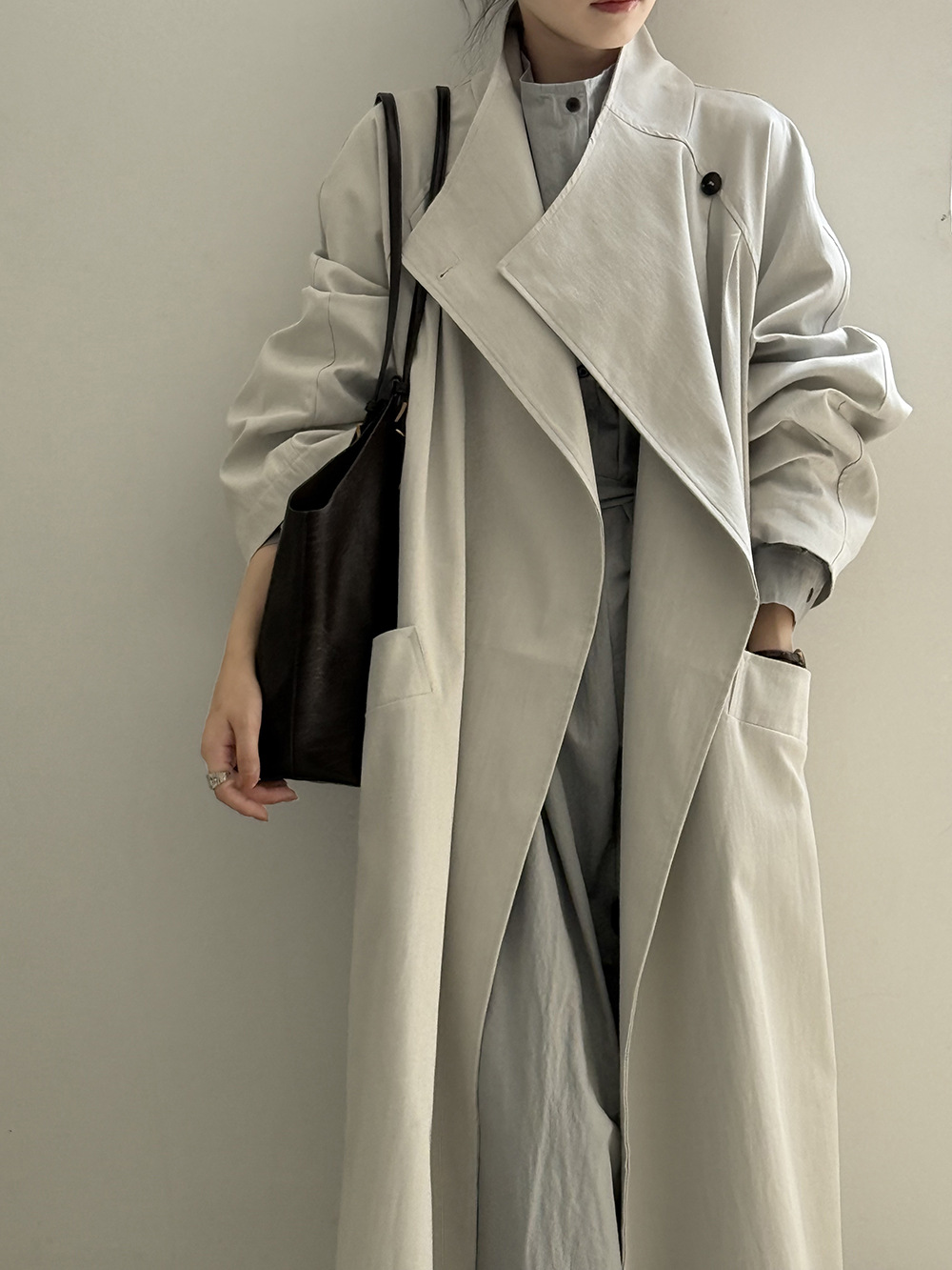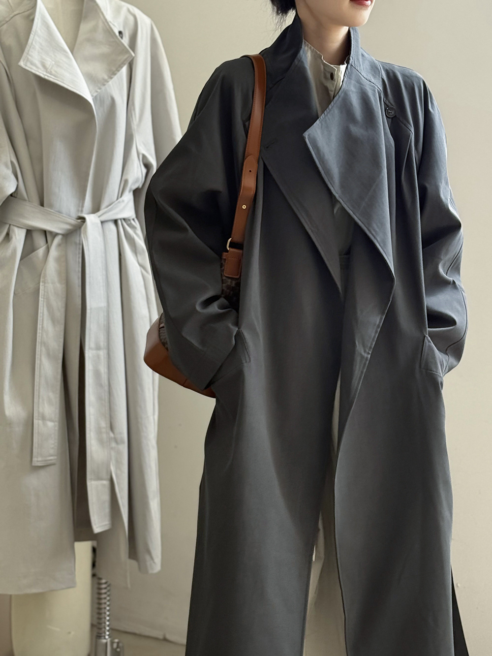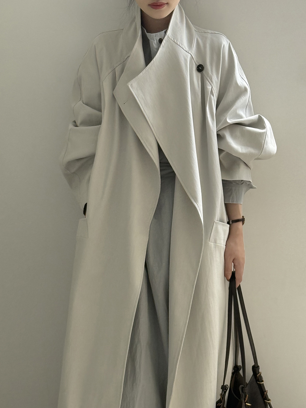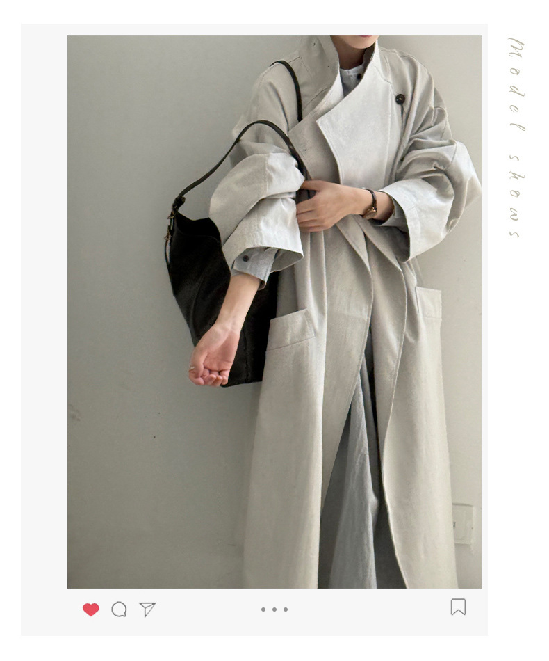 Retro Lapels One Button Mid-length Trench Coat Women's Belt Coat
