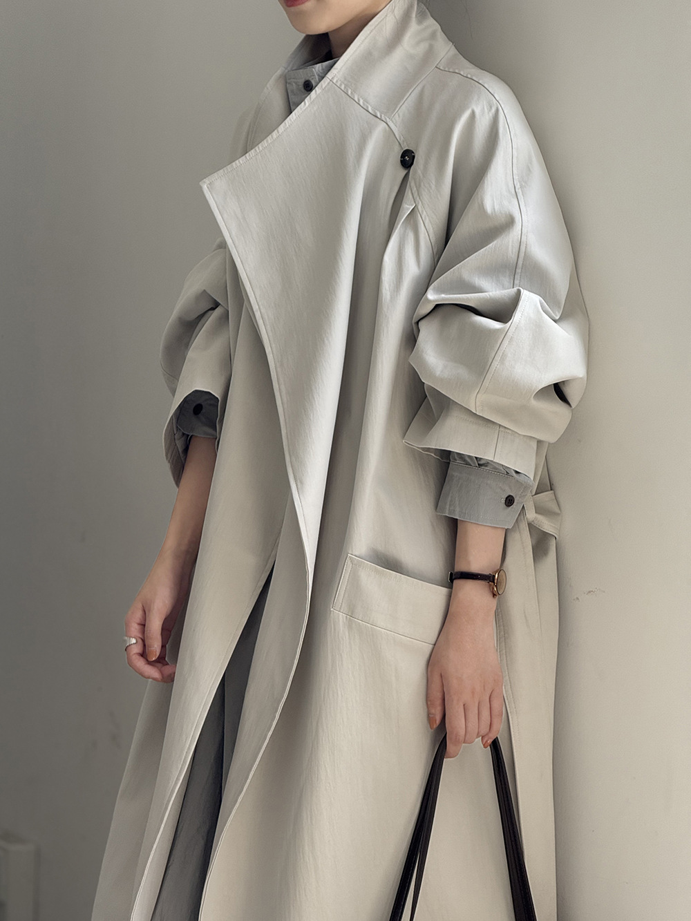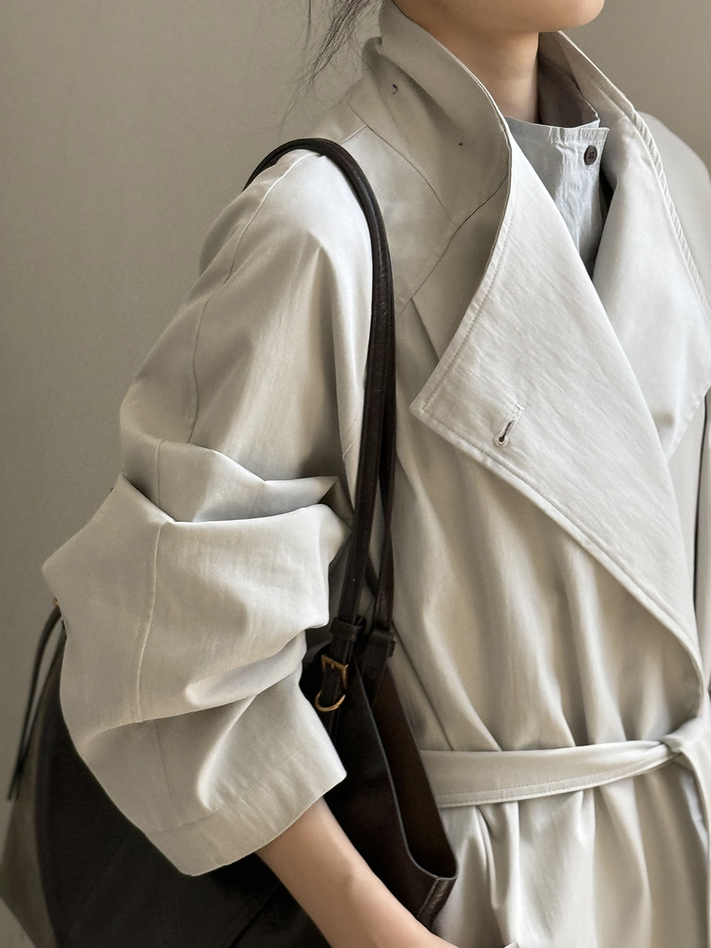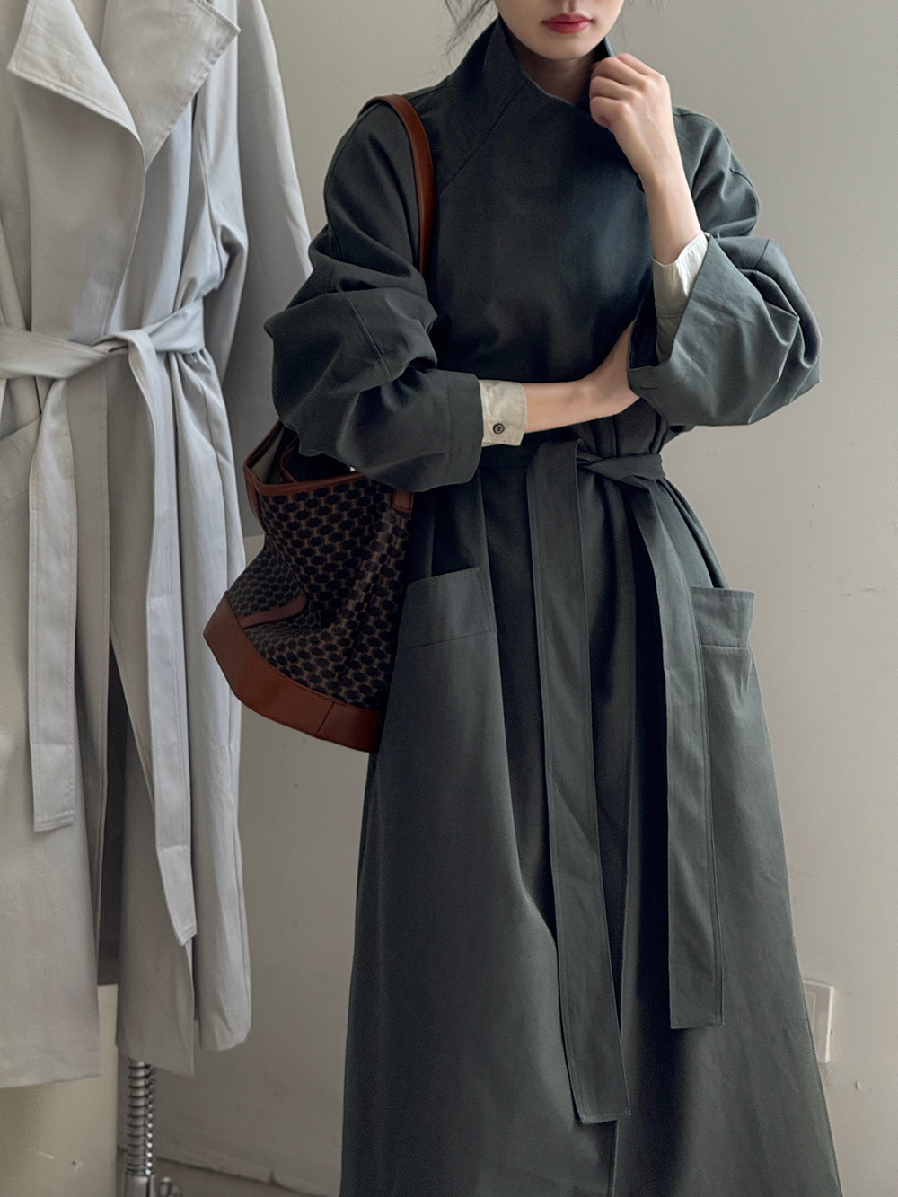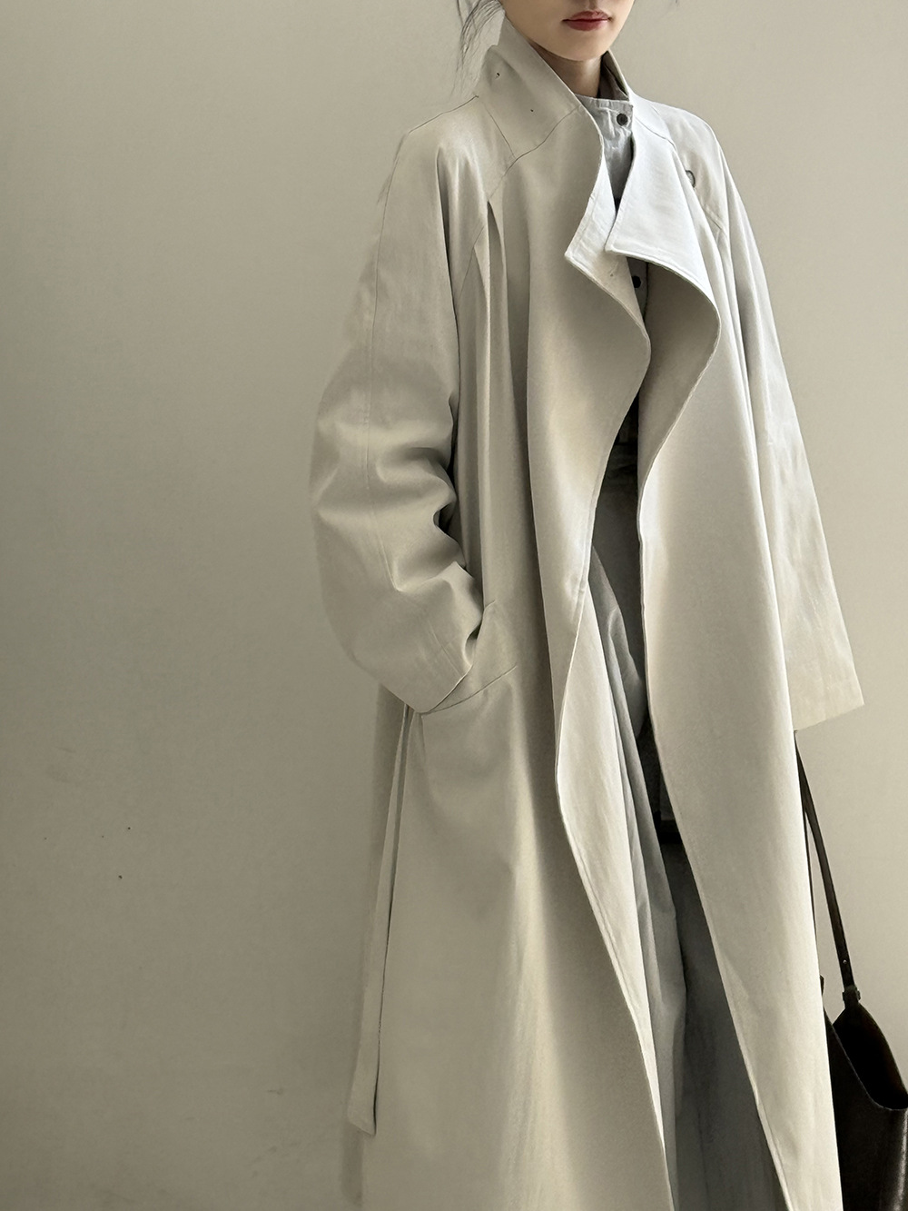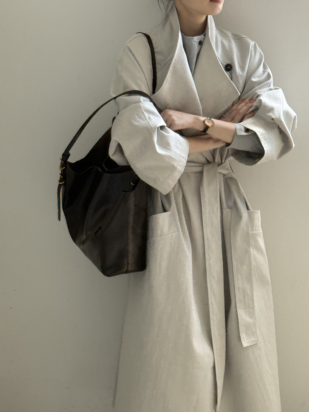 Retro Lapels One Button Mid-length Trench Coat Women's Belt Coat