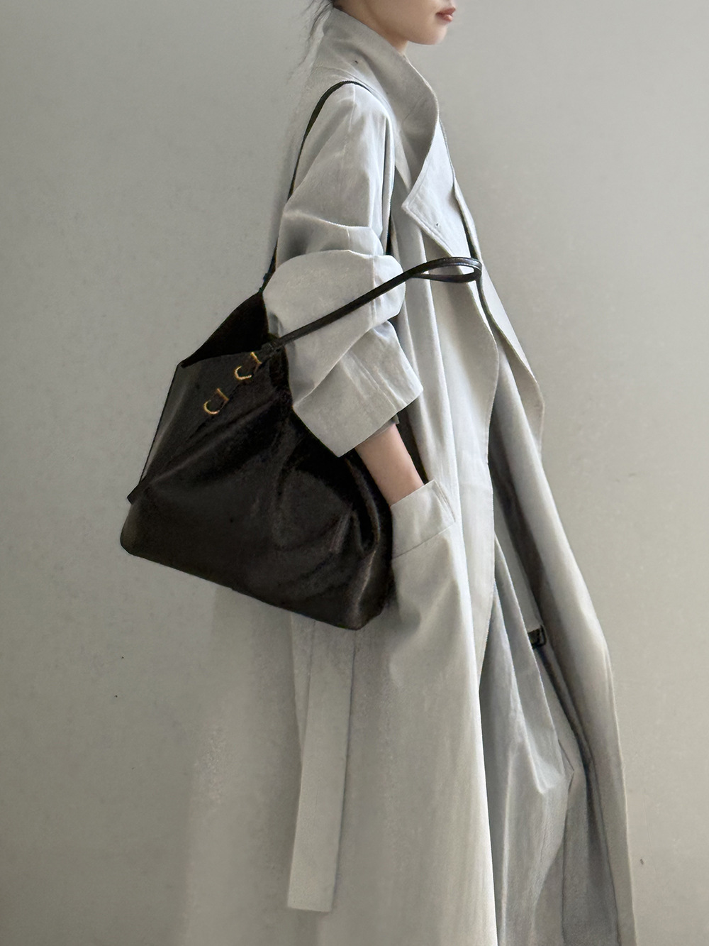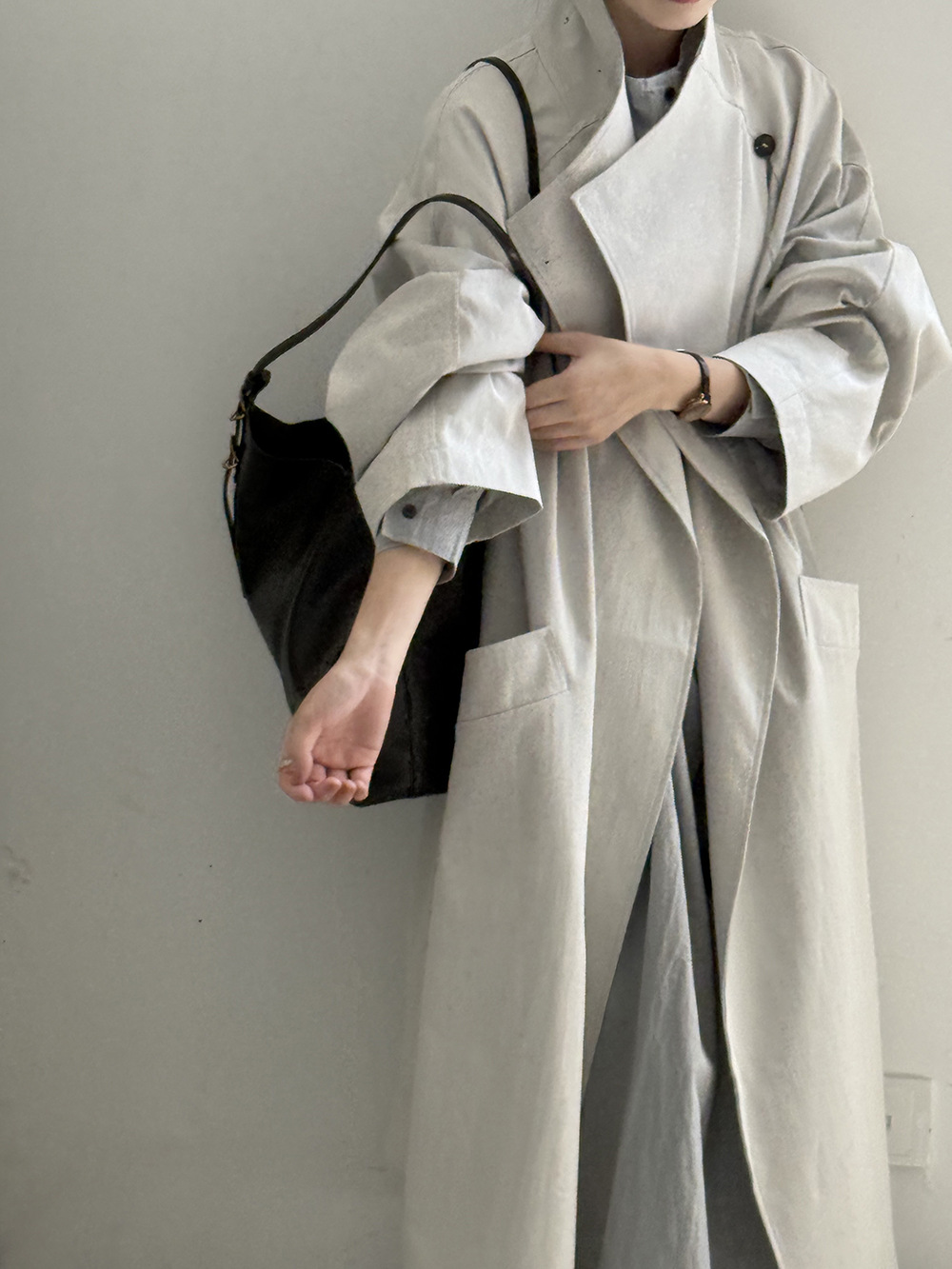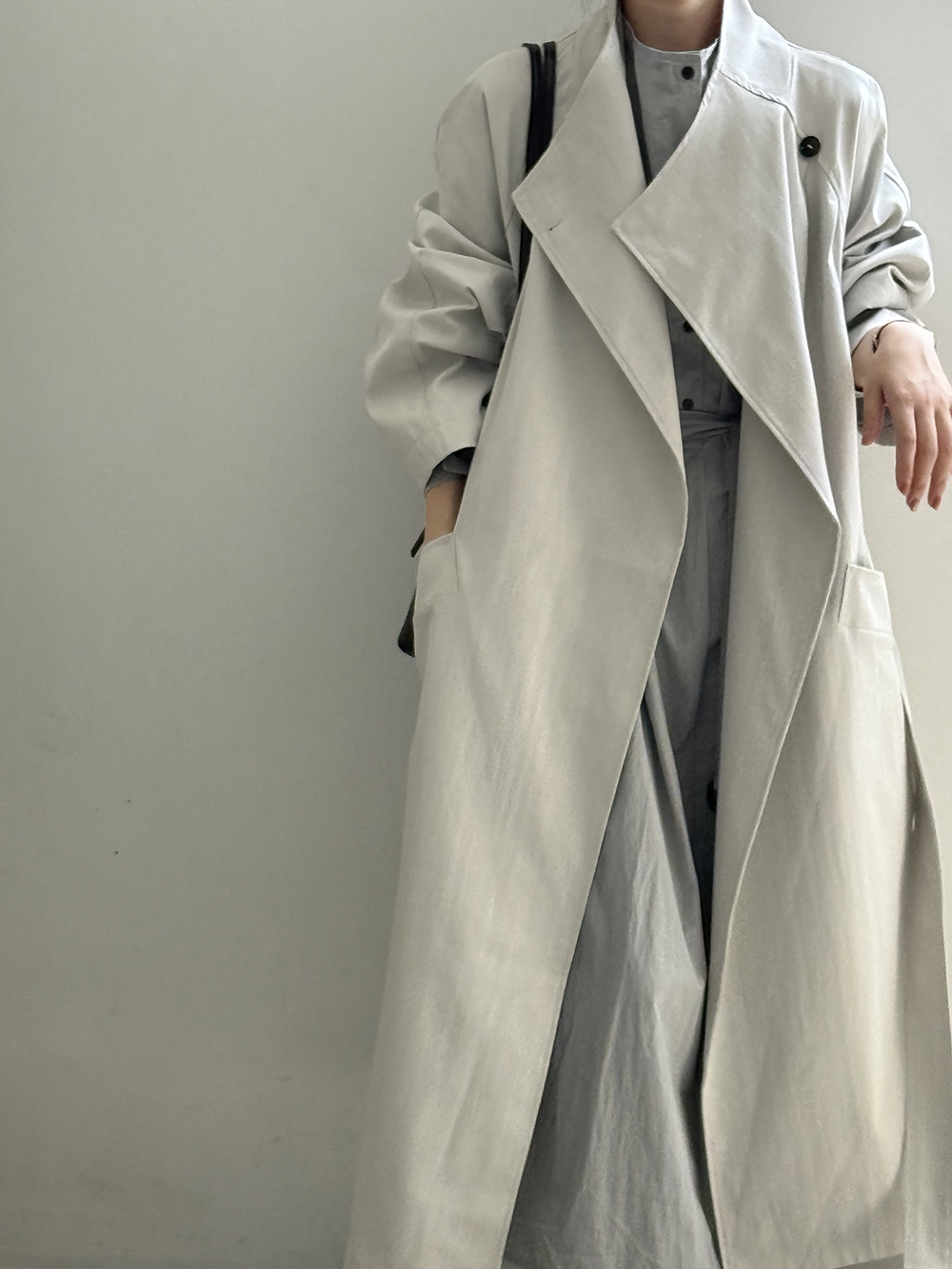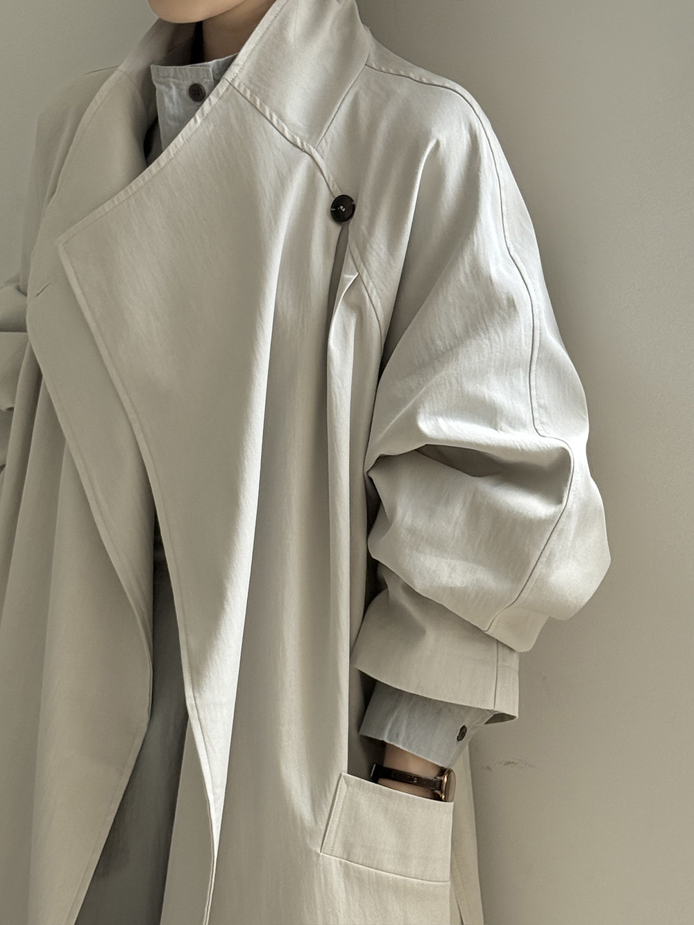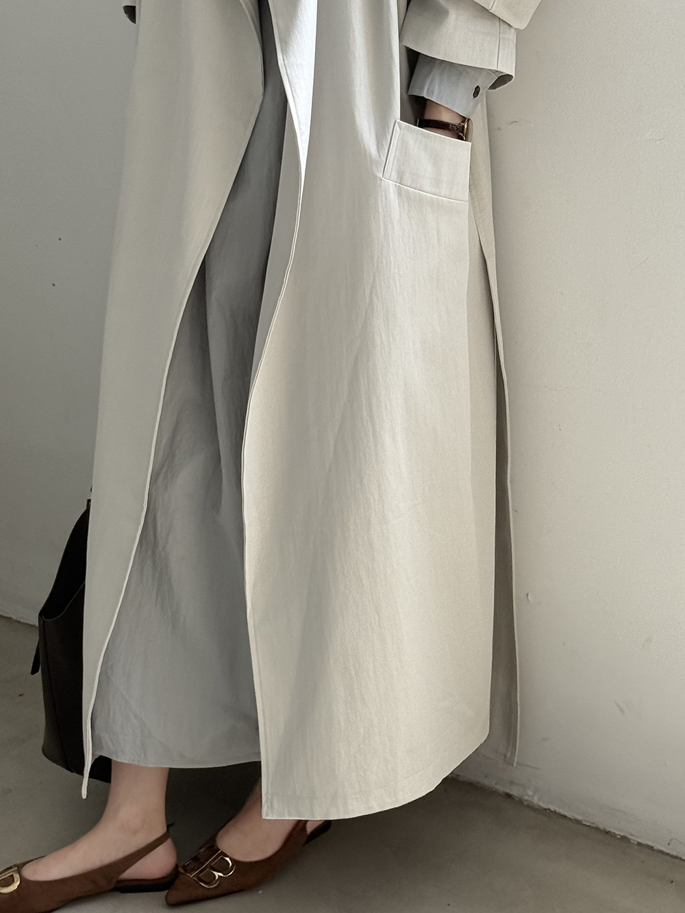 Retro Lapels One Button Mid-length Trench Coat Women's Belt Coat