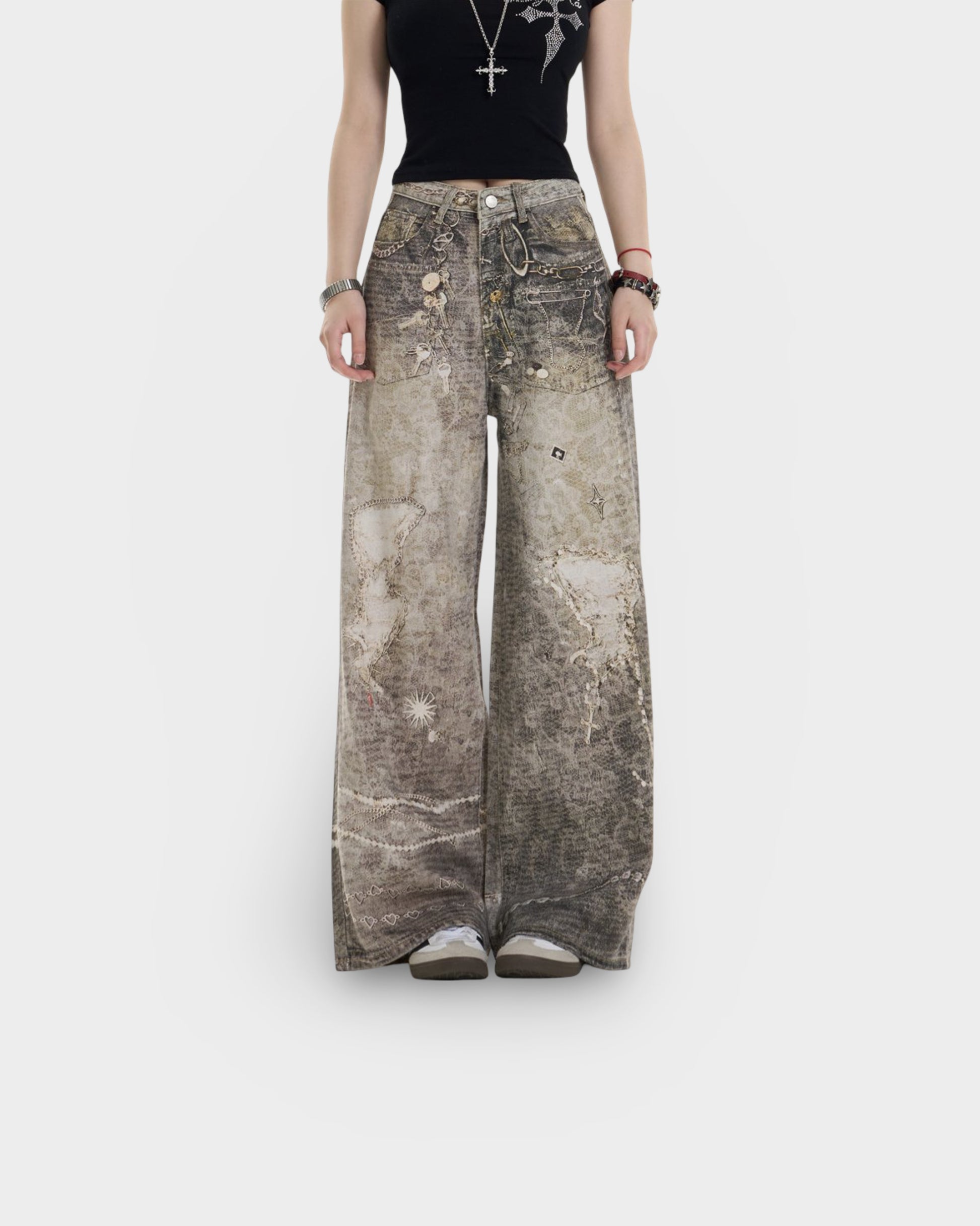 Retro Washed Worn Jeans Loose Straight Wide-leg Pants