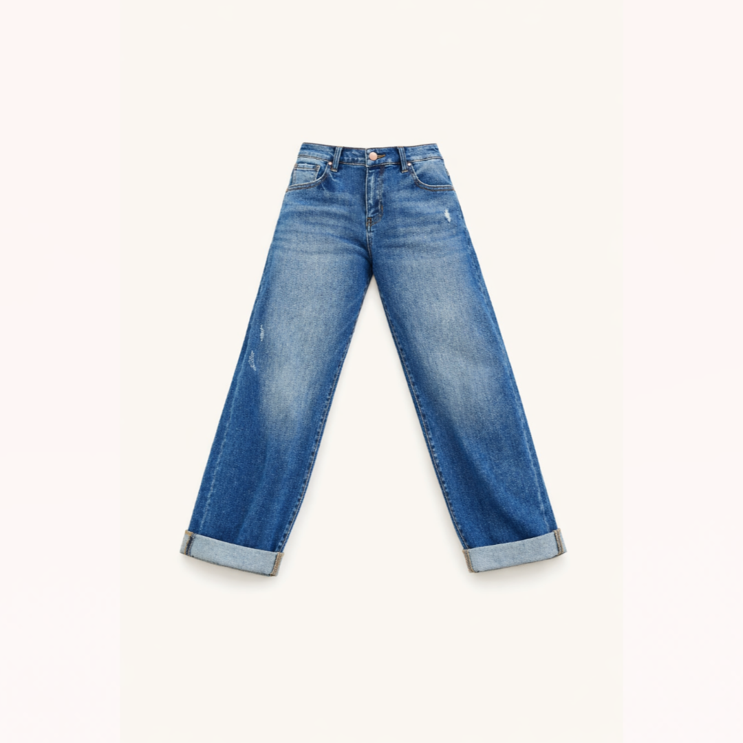 These jeans are built on proportion, not trend. A relaxed wide-leg shape paired with a structured waist creates a silhouette that feels intentional and composed. The cuffed hem is not decorative—it’s a control point, giving weight at the bottom and balance to the overall form.