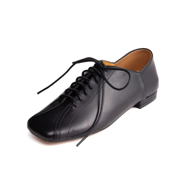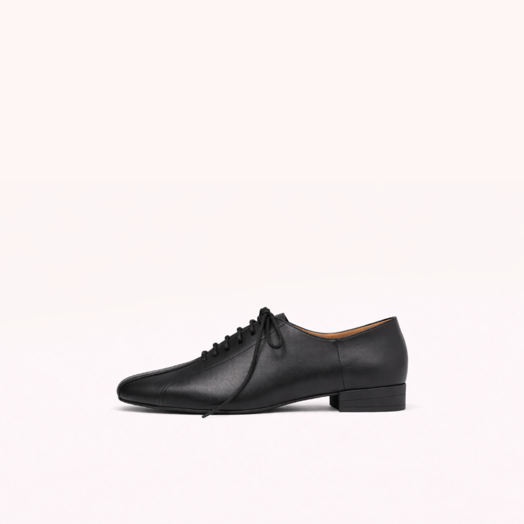 Black Leather Lace-Up Shoe with Low Structured Heel
