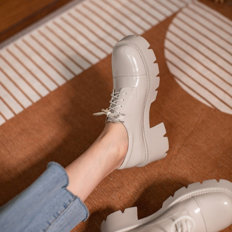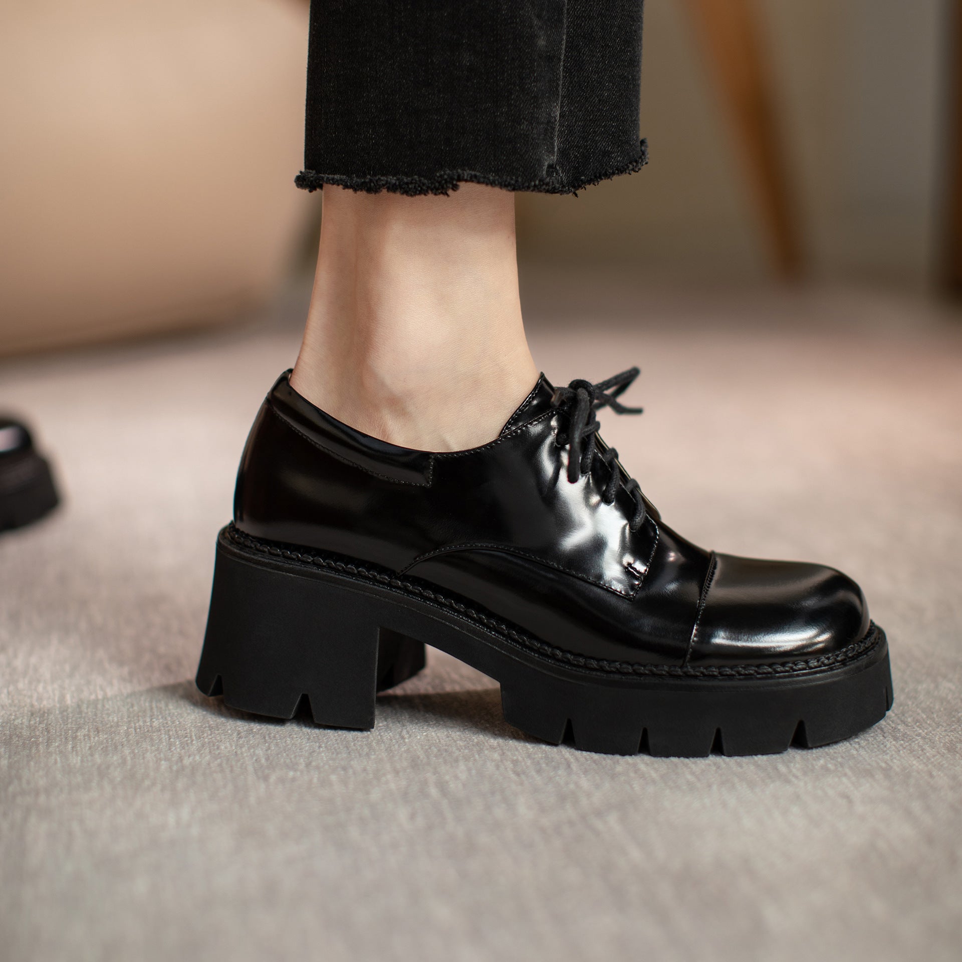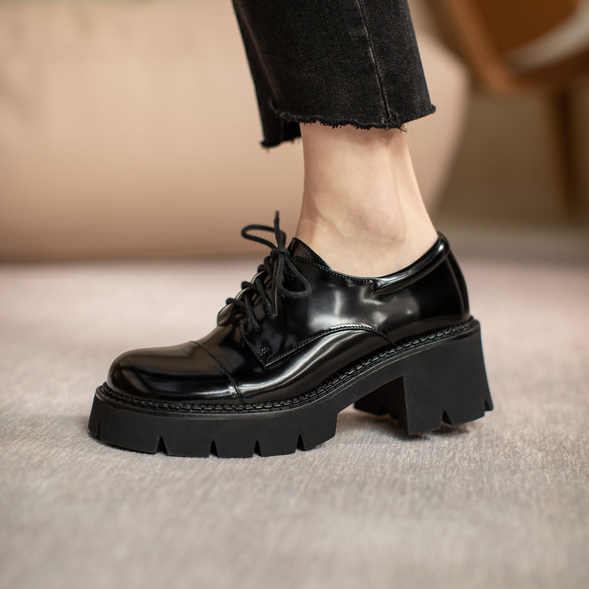 Small Single Shoes Women's British Style Trifle Thick-soled Deep Lace