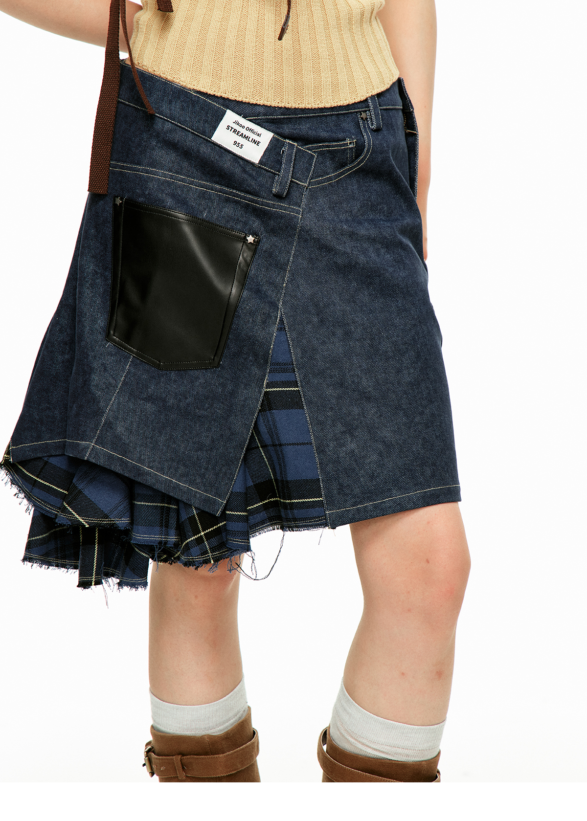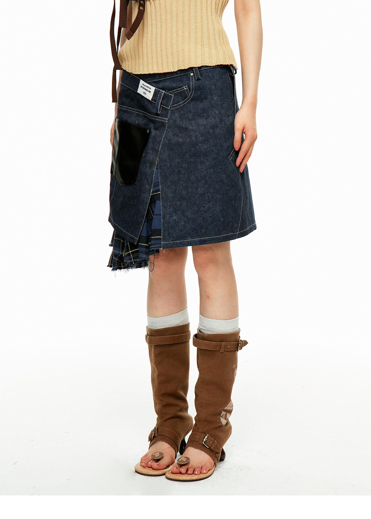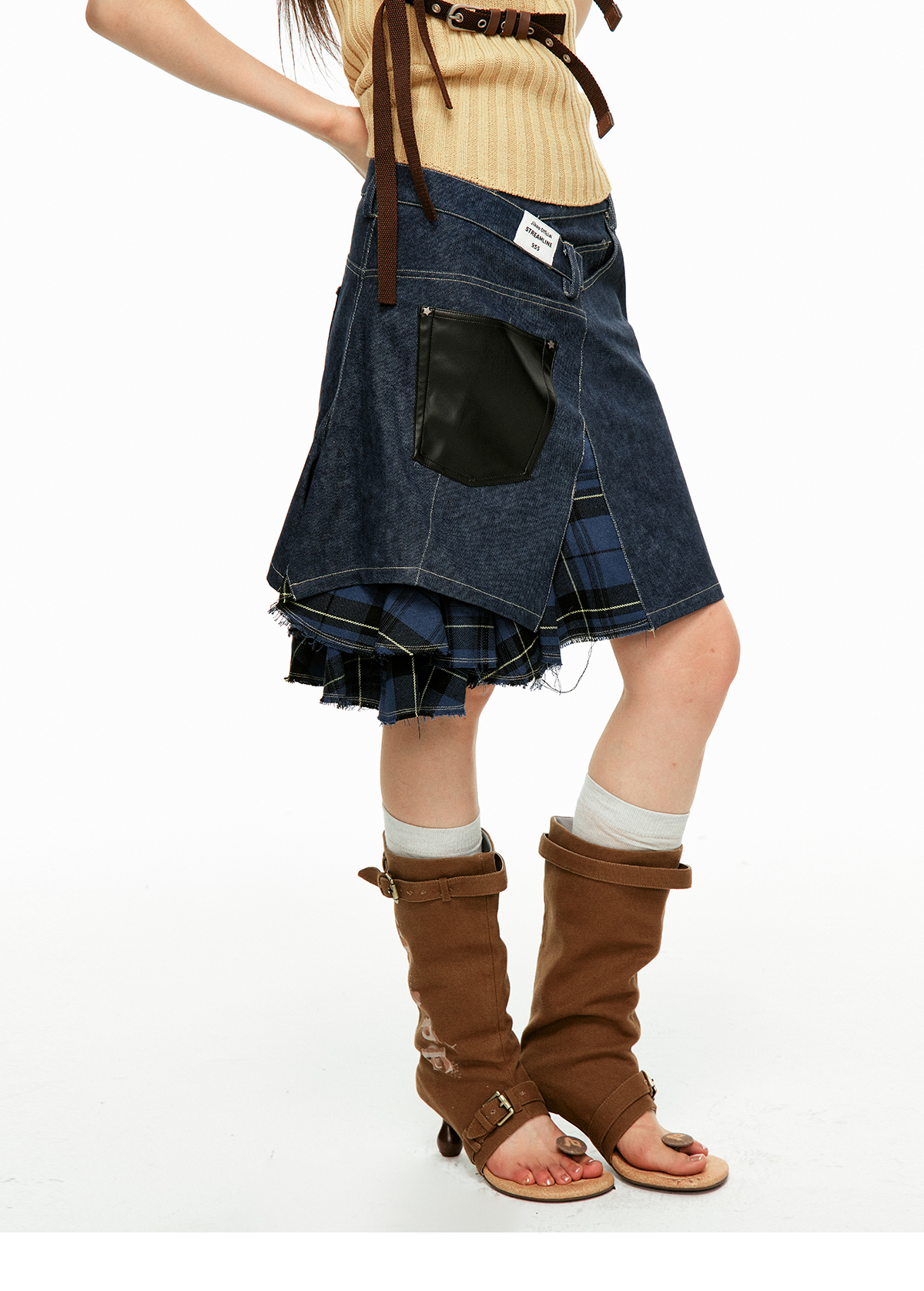 Splicing Irregular Half Skirt, Women's Fringed Twill Mid Skirt
