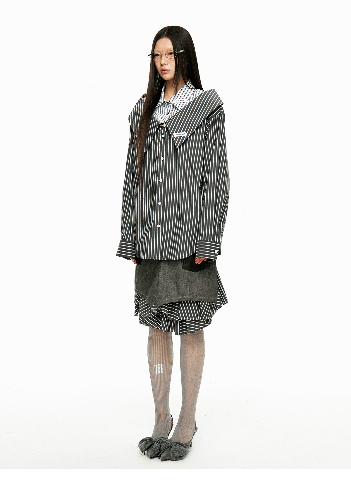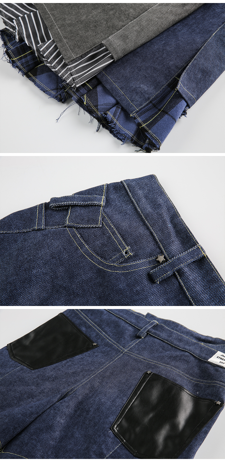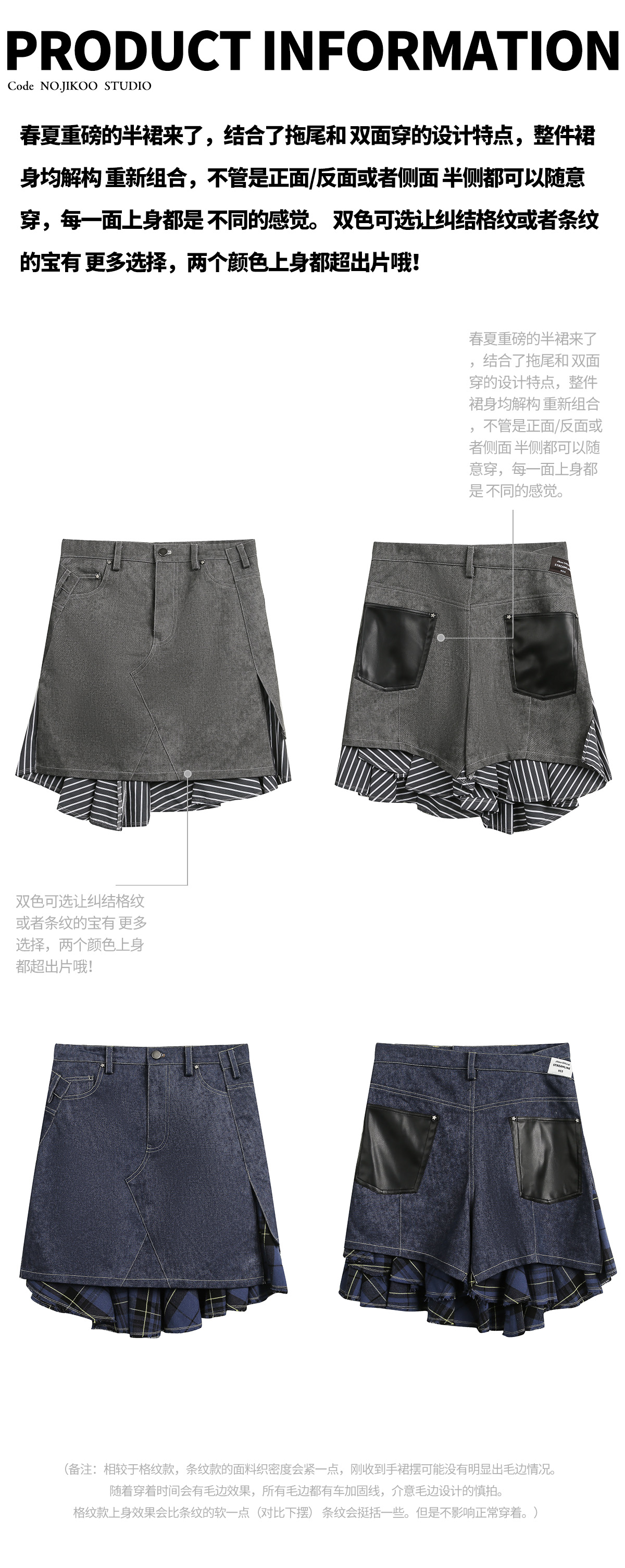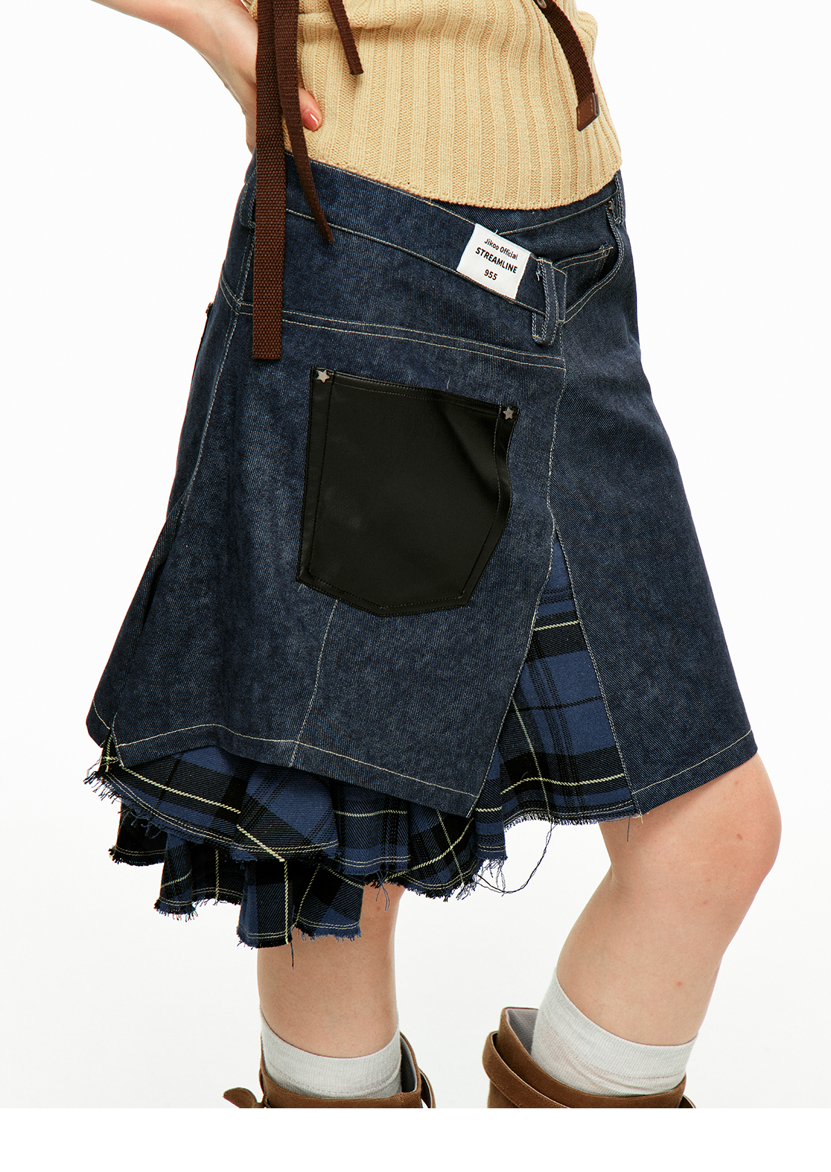 Splicing Irregular Half Skirt, Women's Fringed Twill Mid Skirt