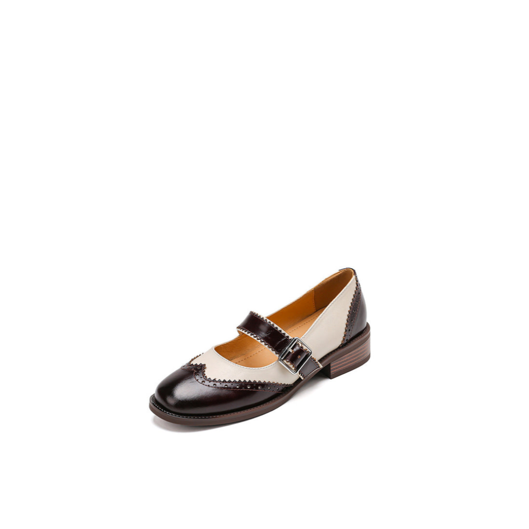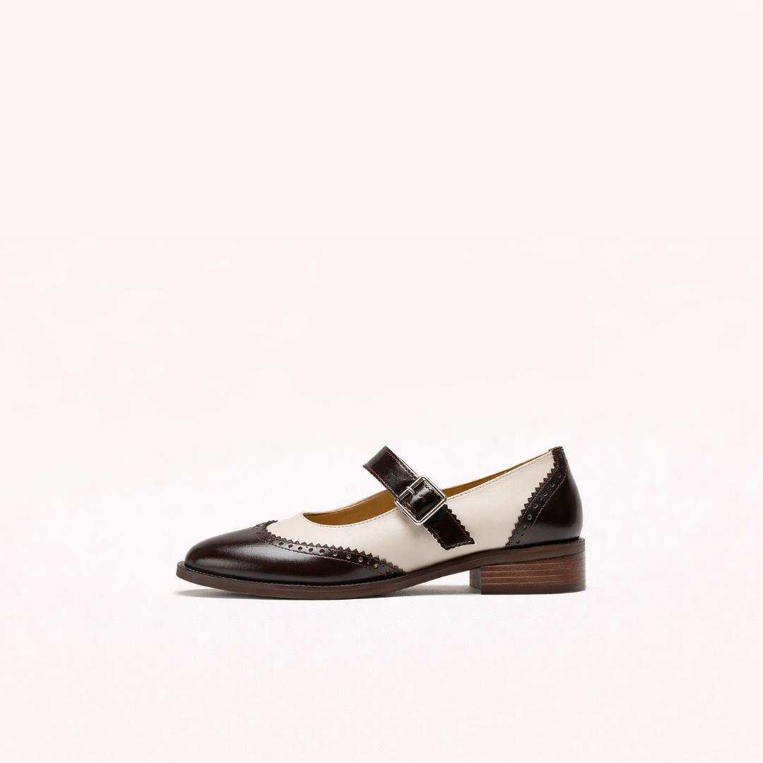 The two-tone leather isn’t for contrast — it’s for balance. Dark, polished panels ground the form; the lighter leather sharpens it. Every edge is cut clean, every stitch intentional. The strap doesn’t decorate — it controls fit and posture. The low stacked heel isn’t meant to elevate height, but to stabilize presence.