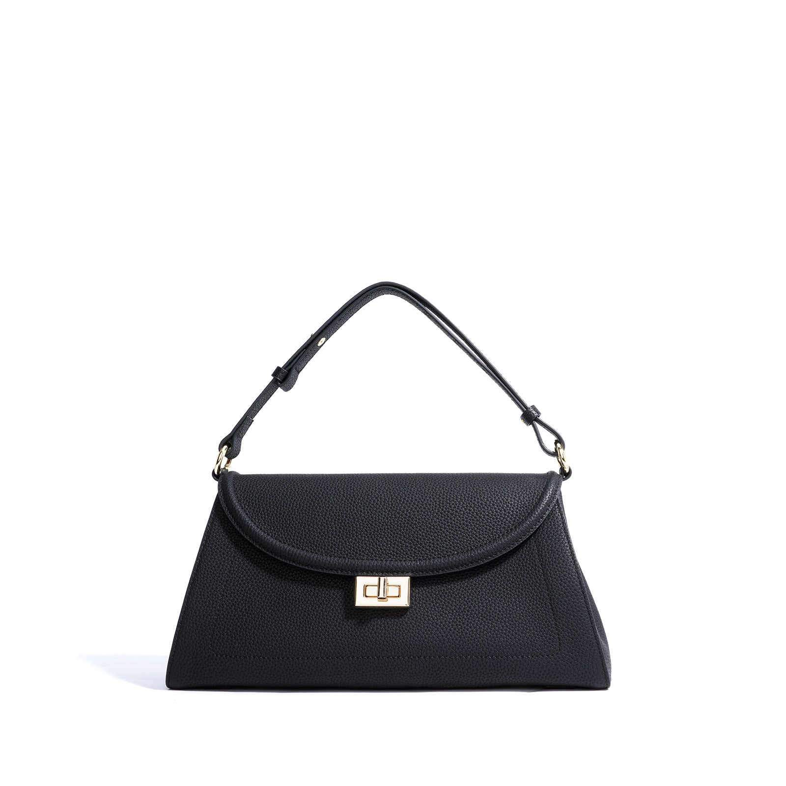 The silhouette is clean and balanced, with a structured body that holds its shape through daily use. A curved flap softens the front line, while a metal turn-lock closure provides secure, mechanical closure without excess hardware.