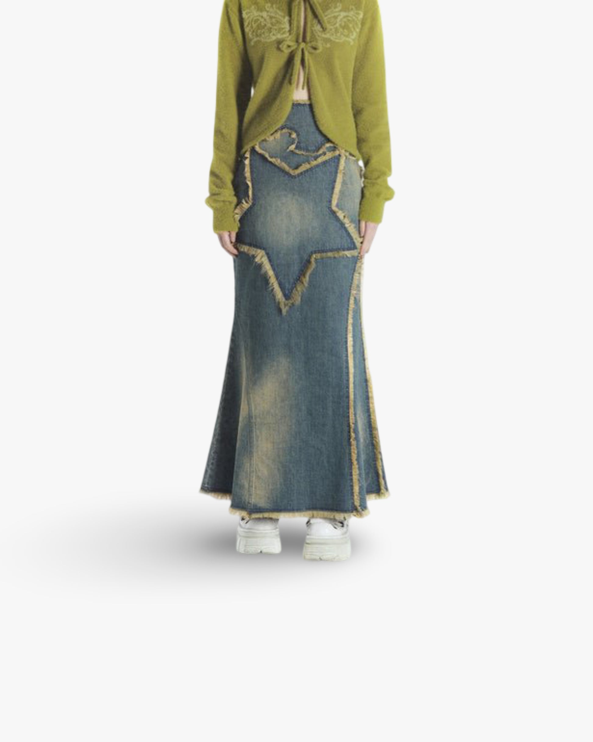 Women's Asymmetrical Vintage Star Denim Long Skirt