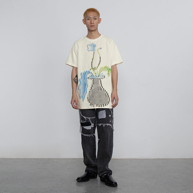 Women's Fashion Short Sleeve Digital Vase T-Shirt