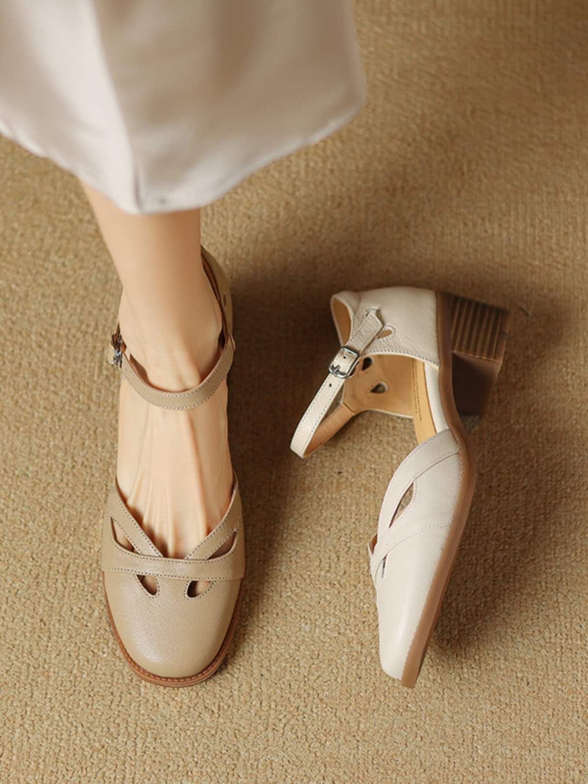 Women's Sheepskin Closed Toe Hollow-out Strap Genuine Leather Roman Sandals