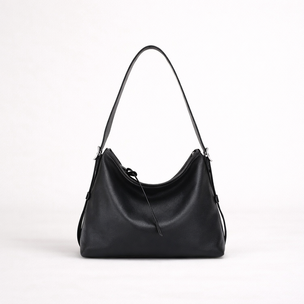 The design supports two carry modes—short shoulder and extended crossbody—through a single adjustable leather strap. The strap is cut from the same leather grade as the body to ensure consistent aging and load tolerance. No mixed materials are used.